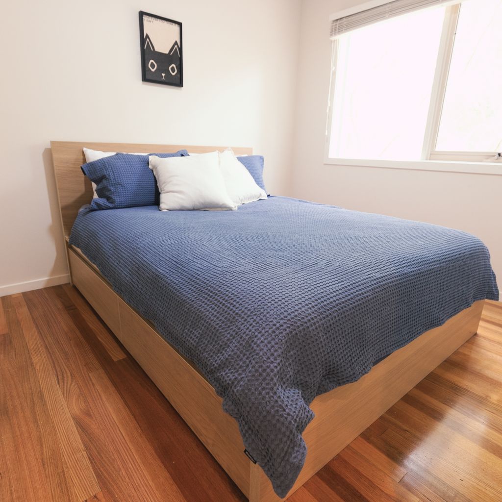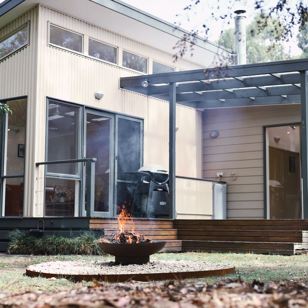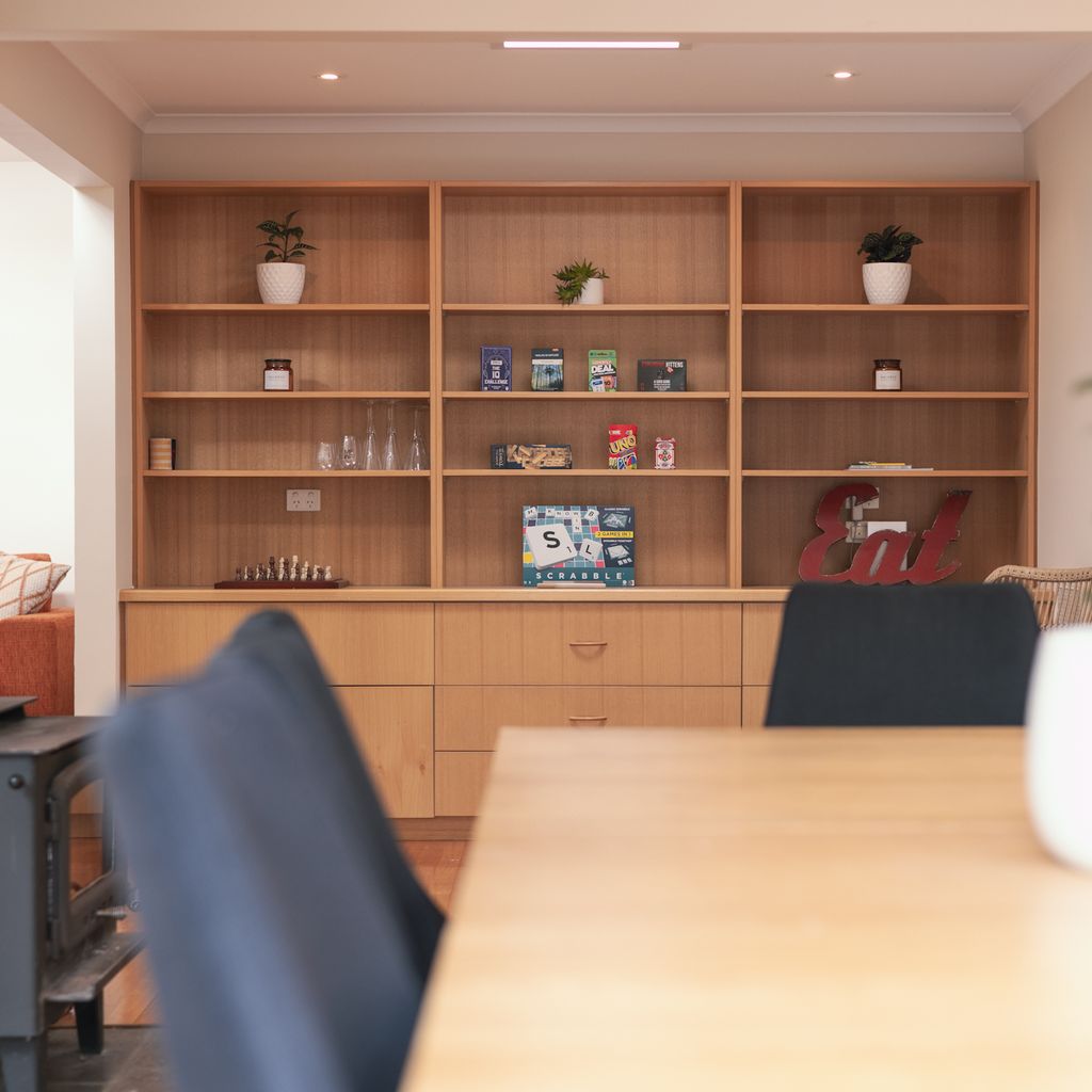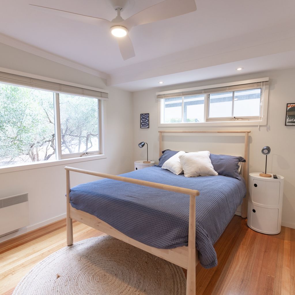 Two bathrooms both have a shower, the ensuite includes a toilet and there is a further separate toilet. Additional comforts include ceiling fans and heating in every bedroom, wall-mounted reverse cycle heating and cooling, and an enclosed wood heater to keep you cozy in cooler months. Extra pillows and blankets are available, and room-darkening blinds ensure a restful night’s sleep. For your convenience, the home offers a laundry area with a washing machine and dryer.