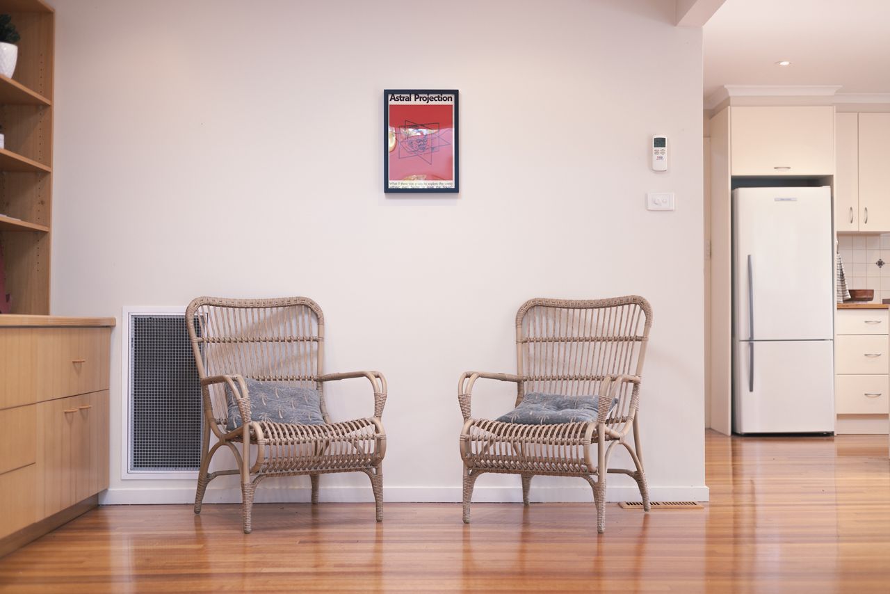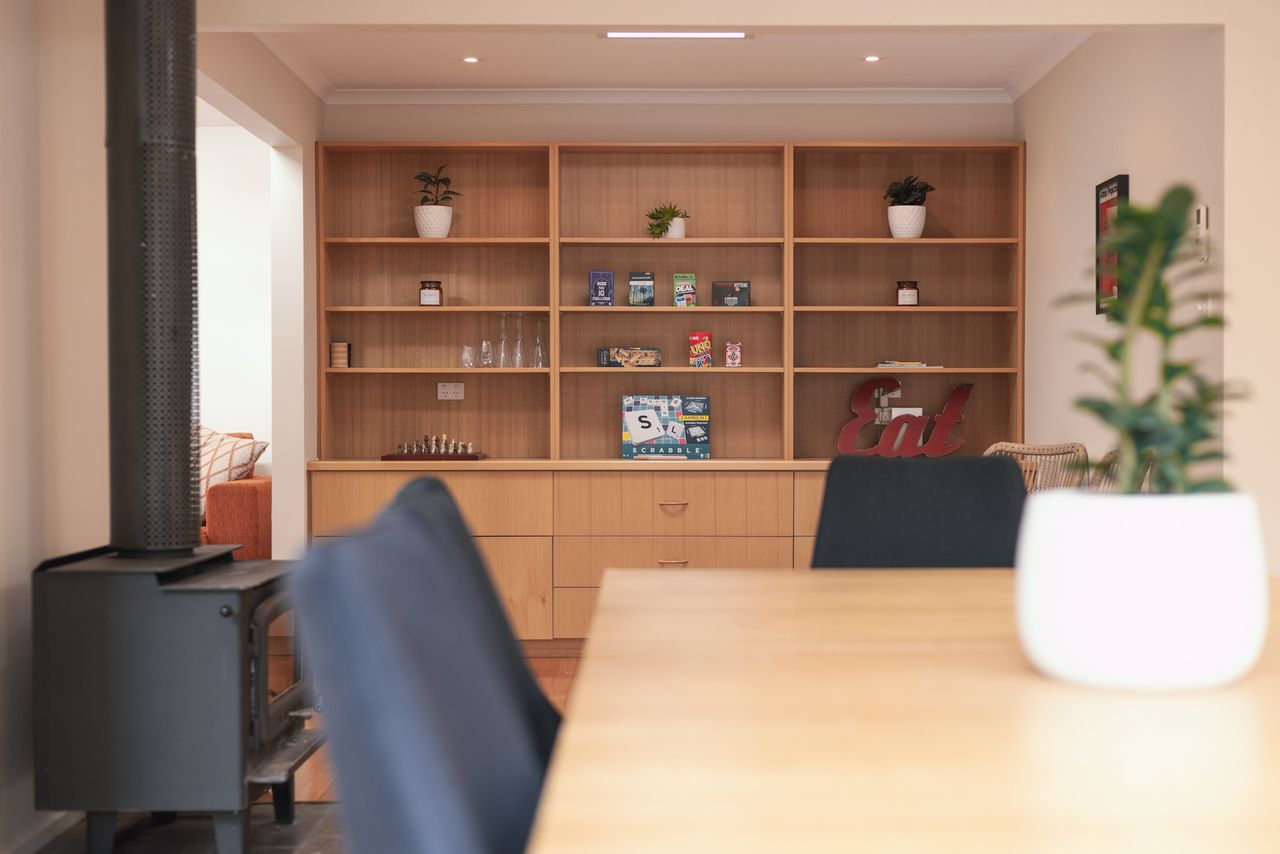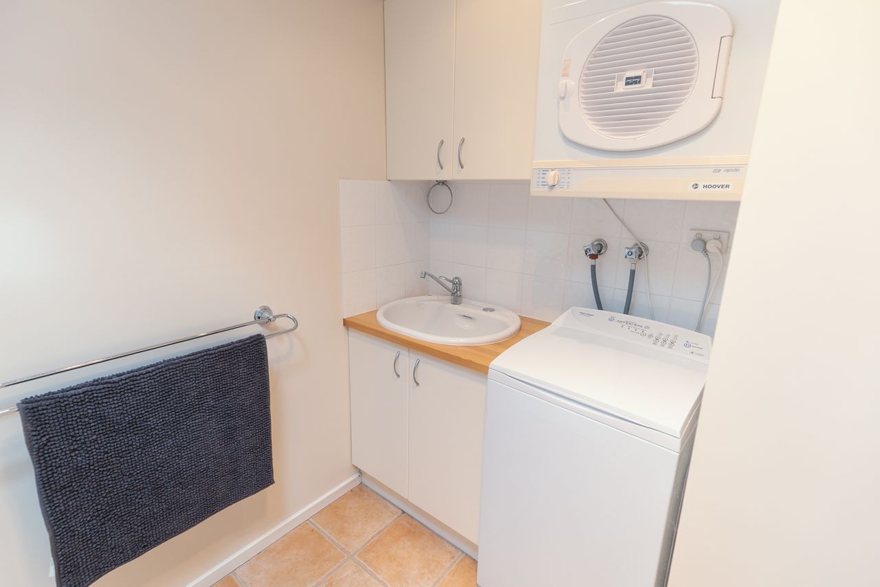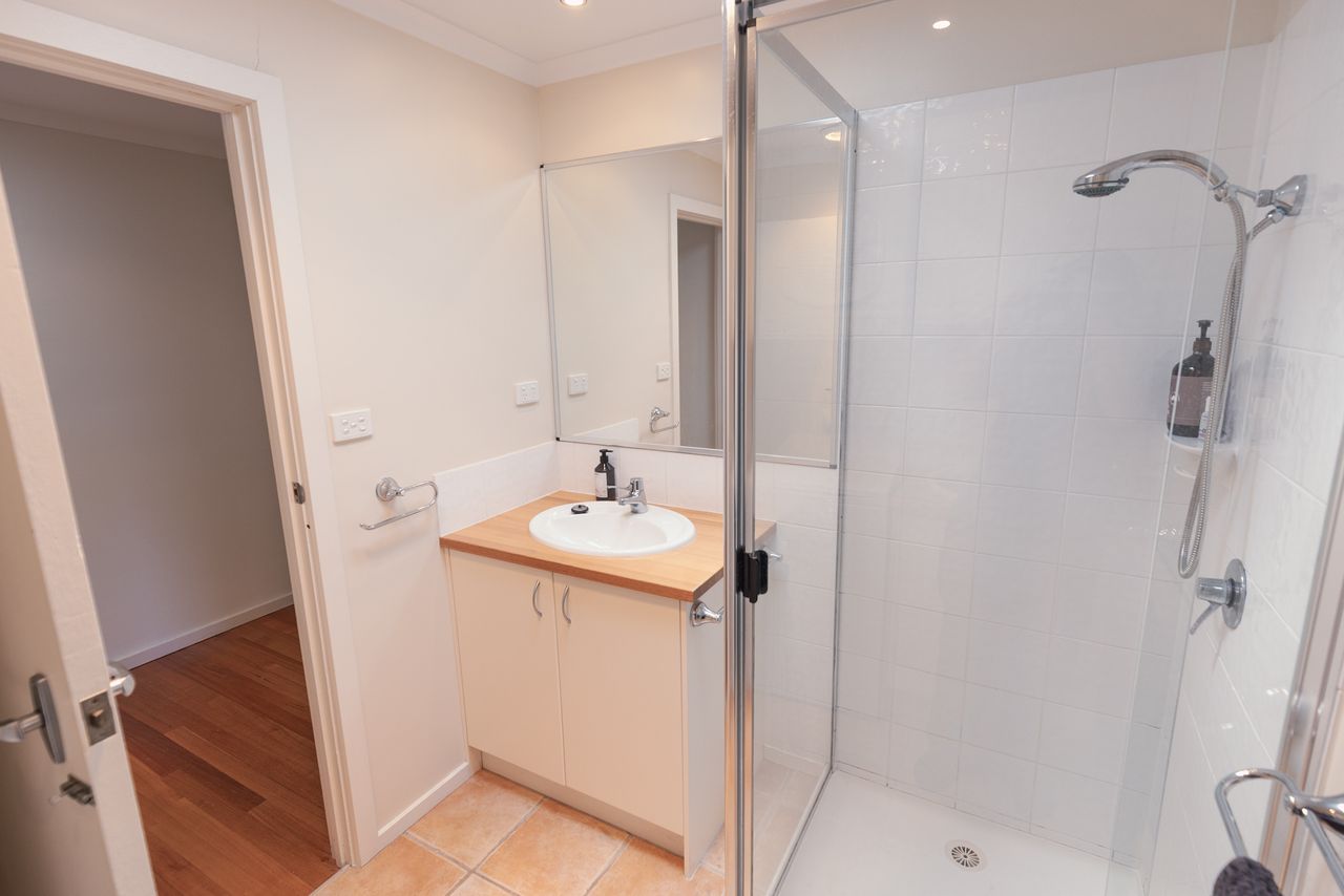 Two bathrooms both have a shower, the ensuite includes a toilet and there is a further separate toilet. Additional comforts include ceiling fans and heating in every bedroom, wall-mounted reverse cycle heating and cooling, and an enclosed wood heater to keep you cozy in cooler months. Extra pillows and blankets are available, and room-darkening blinds ensure a restful night’s sleep. For your convenience, the home offers a laundry area with a washing machine and dryer.