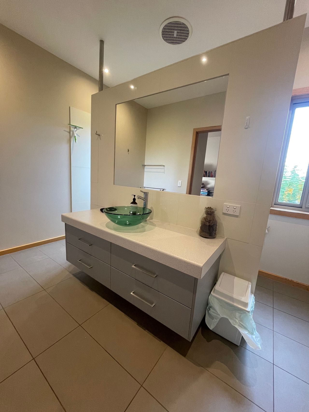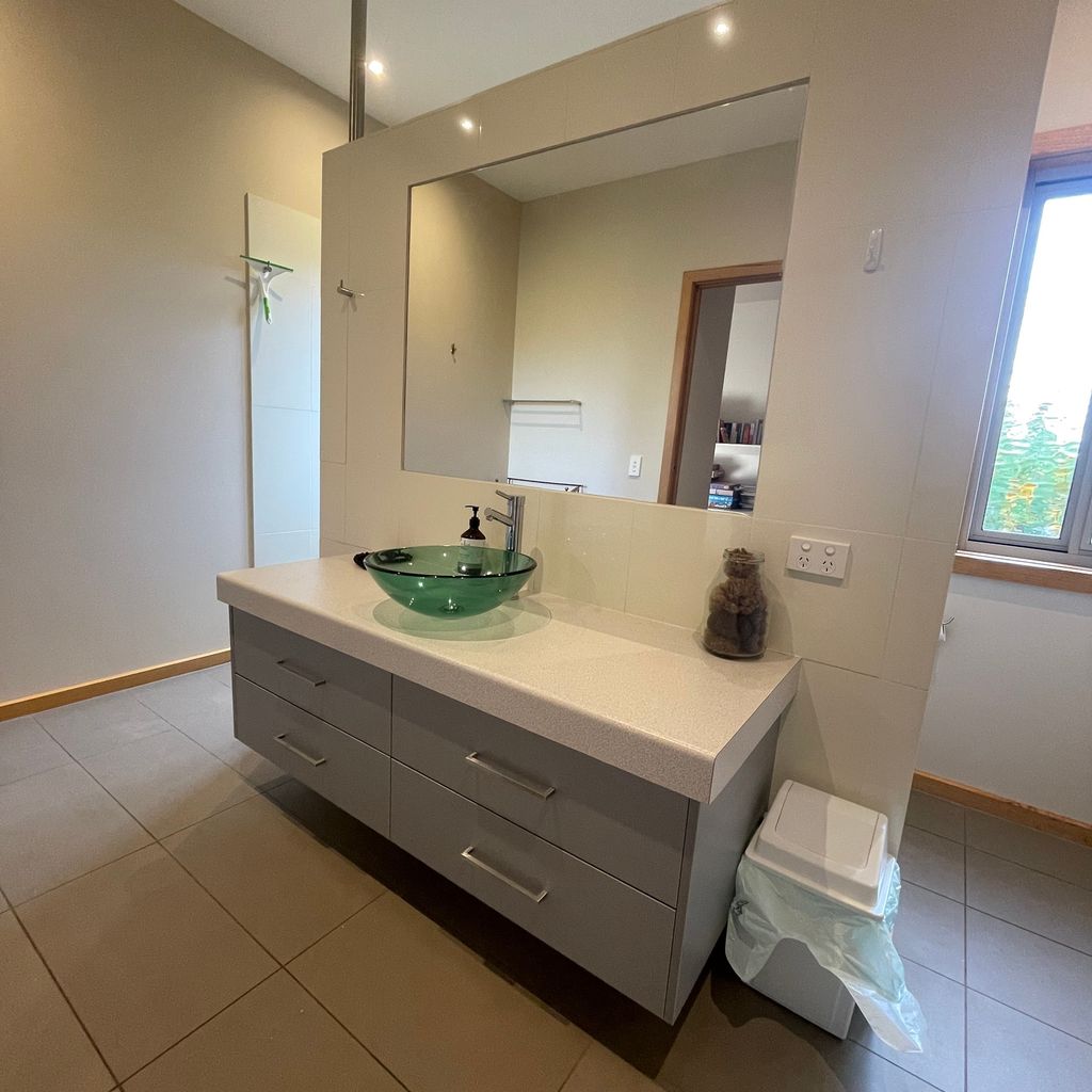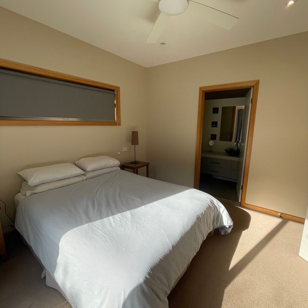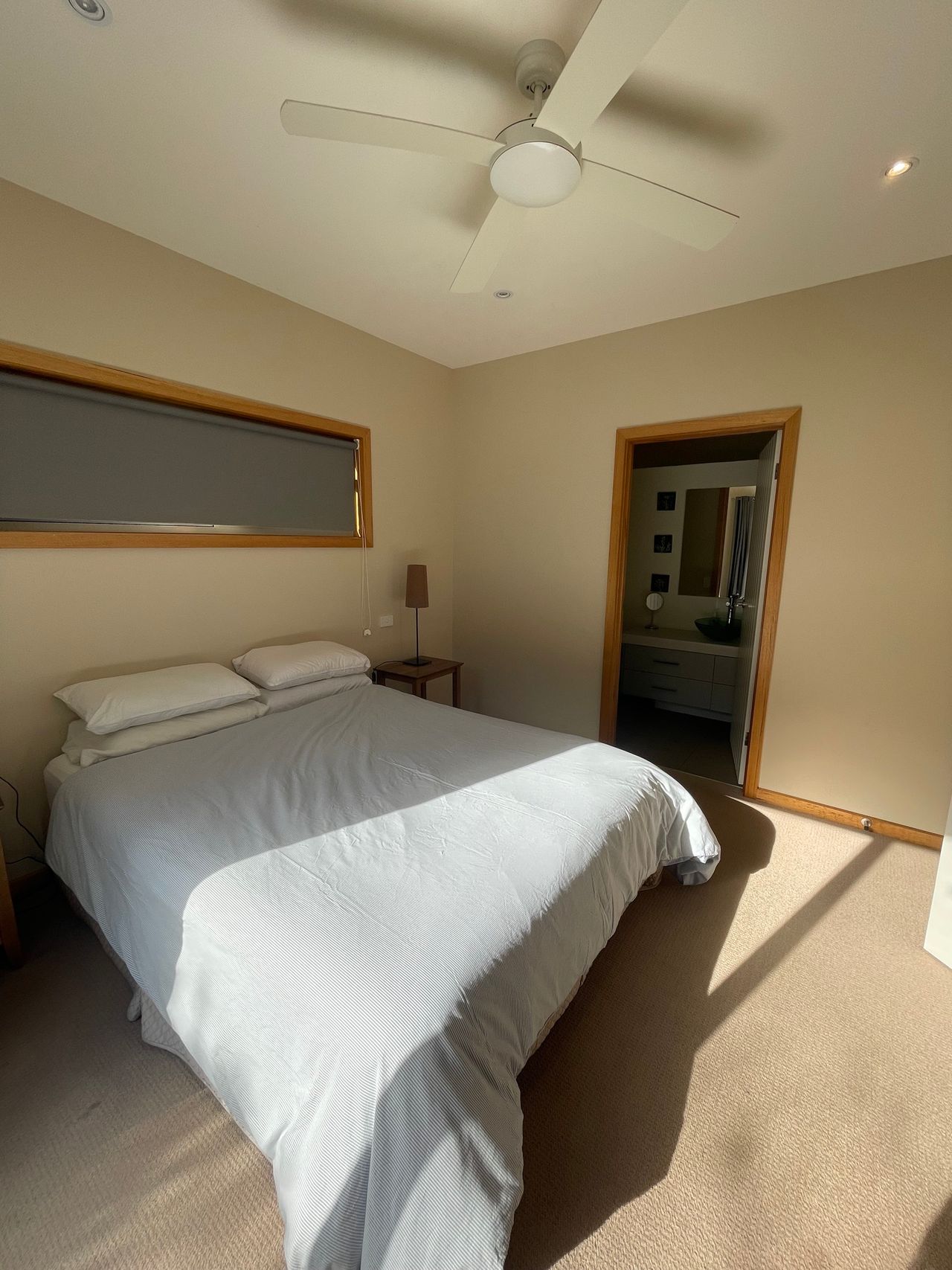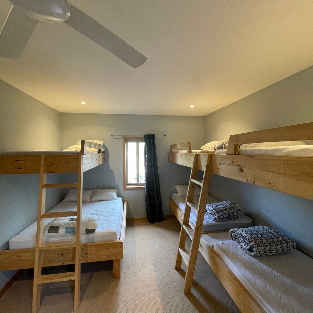 The home features three bedrooms, each equipped with ceiling fans. The master bedroom includes a queen sized bed, a built in wardrobe and a private ensuite bathroom with a toilet and shower. The second bedroom also has a queen bed and a built in wardrobe, while the third bedroom is perfect for families or groups of friends, featuring two bunk beds and a tri bunk. A second modern bathroom provides added convenience and helps avoid morning queues.