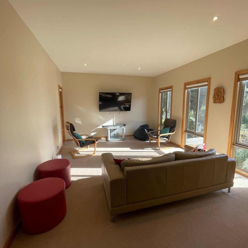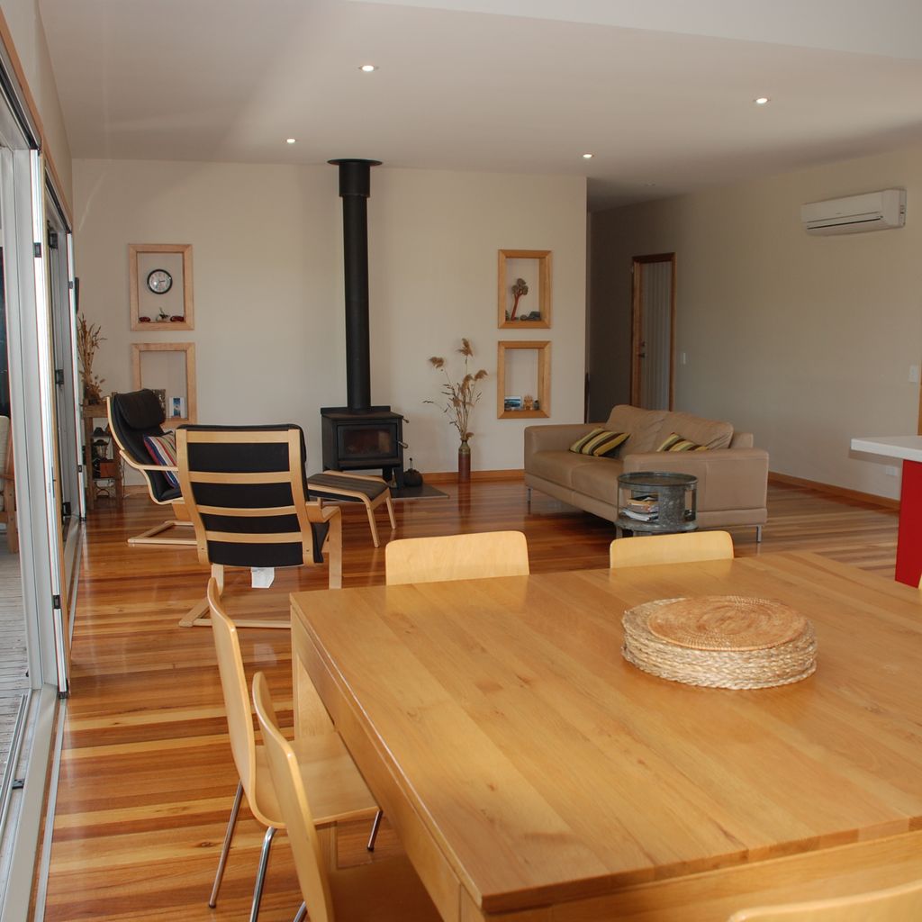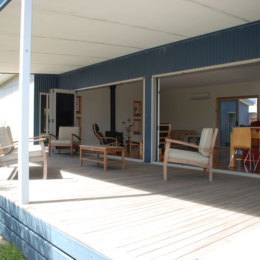 Comfort is ensured year round with air conditioning, ceiling fans and wall mounted reverse cycle heating and cooling systems. The deck spans the side of the property, with folding doors that can be fully opened on warmer nights. Guests can enjoy a large, comfortable seating area, darts, and a BBQ for entertainment and relaxation. Just a short walk from the beach, this home allows you to leave the car at home, while the nearby town center is perfect for a morning coffee or an evening meal. Key collection and return are at Inverloch. No lock box facilities are available at the property.