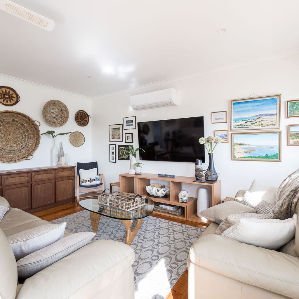 Year round comfort is offered with two split system air conditioners ensuring all living areas and the master bedroom are cool during summer and warm during winter. In Summer, open the large windows throughout to feel the ocean breeze, and take a breath in and smell the sea air.