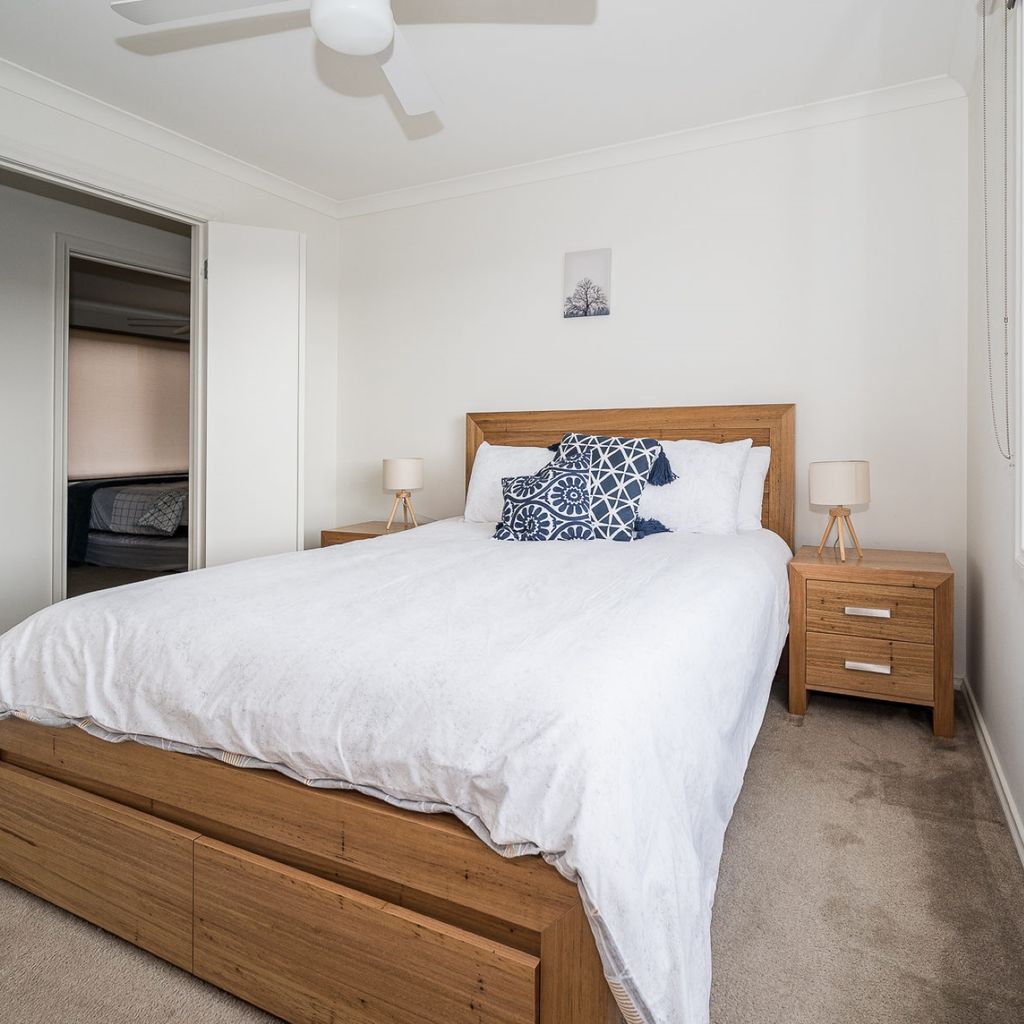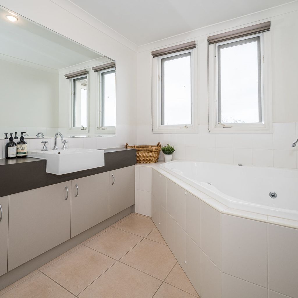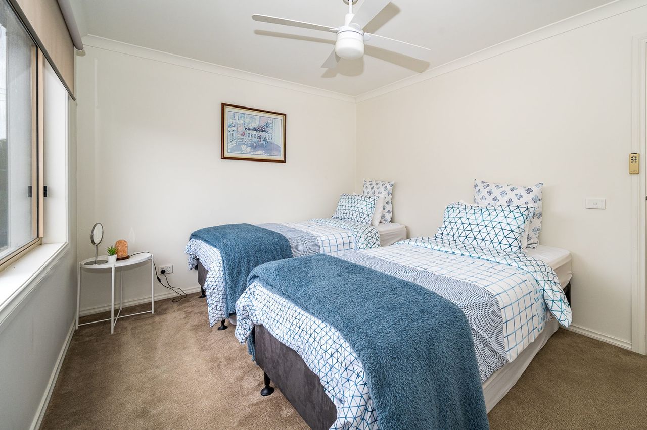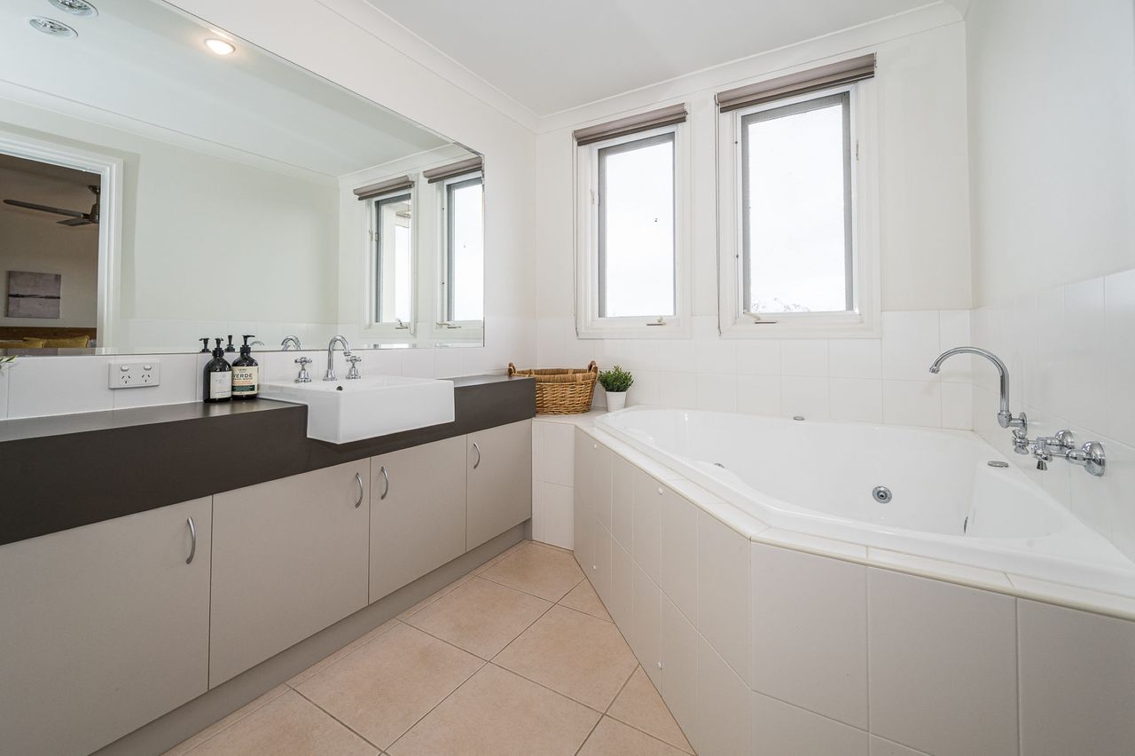 This holiday retreat also includes a gorgeous master bedroom with a generous walk-in wardrobe and a luxurious spa bath ensuite. Additionally, there are two more queen bedrooms and two king single beds with trundles, perfect for accommodating extra guests or children.