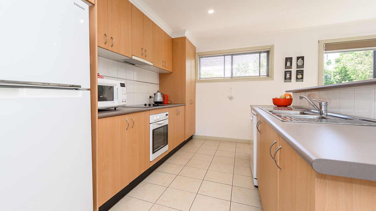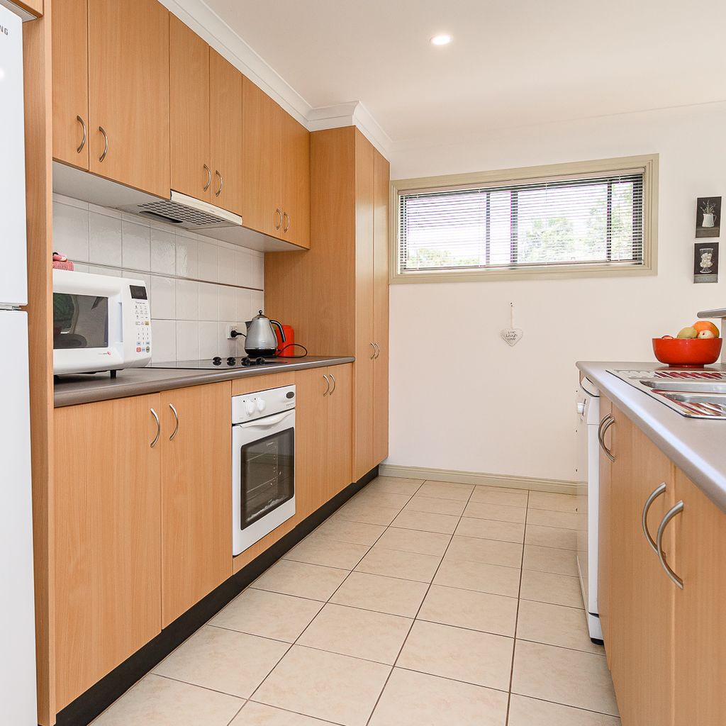 The spacious kitchen faces the open plan dining and living room with split system and overlooks the balcony, the perfect spot to enjoy your morning cuppa or a glass of wine in the afternoon.
