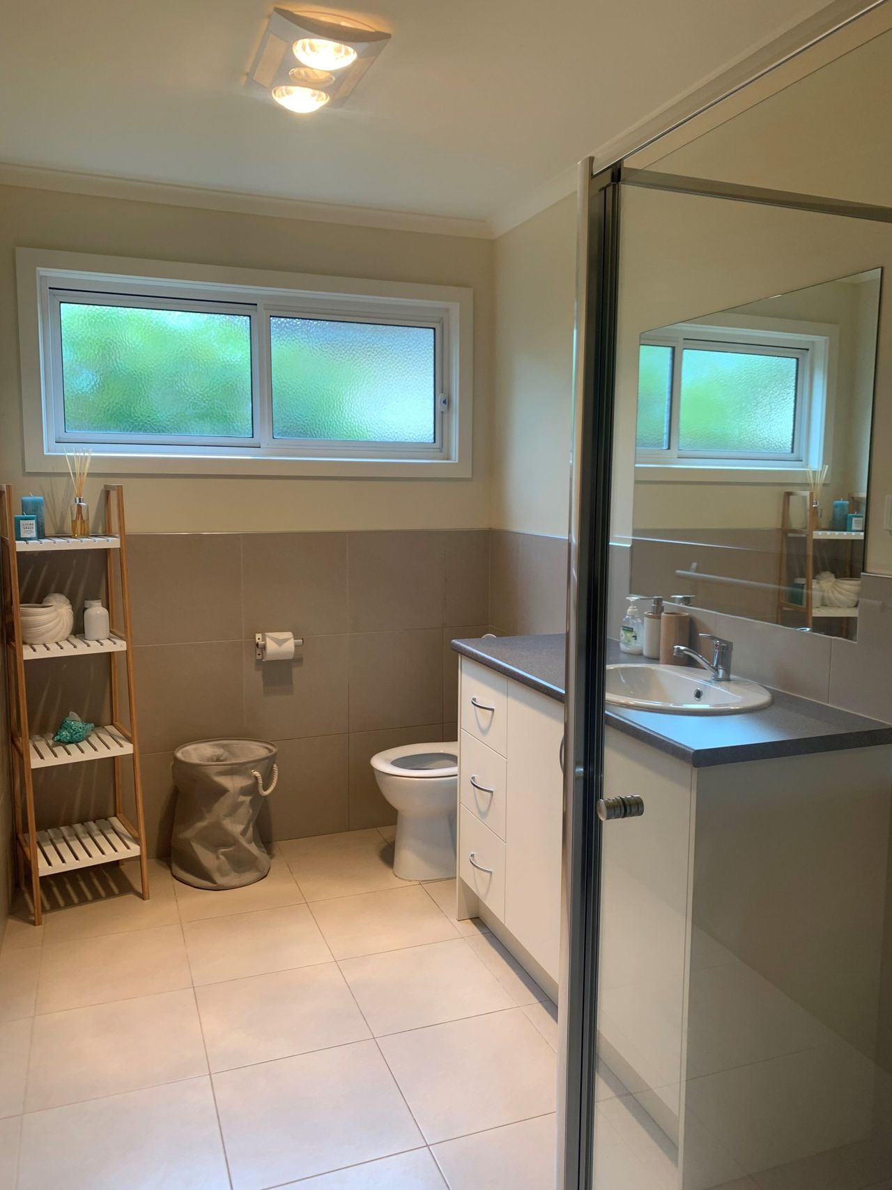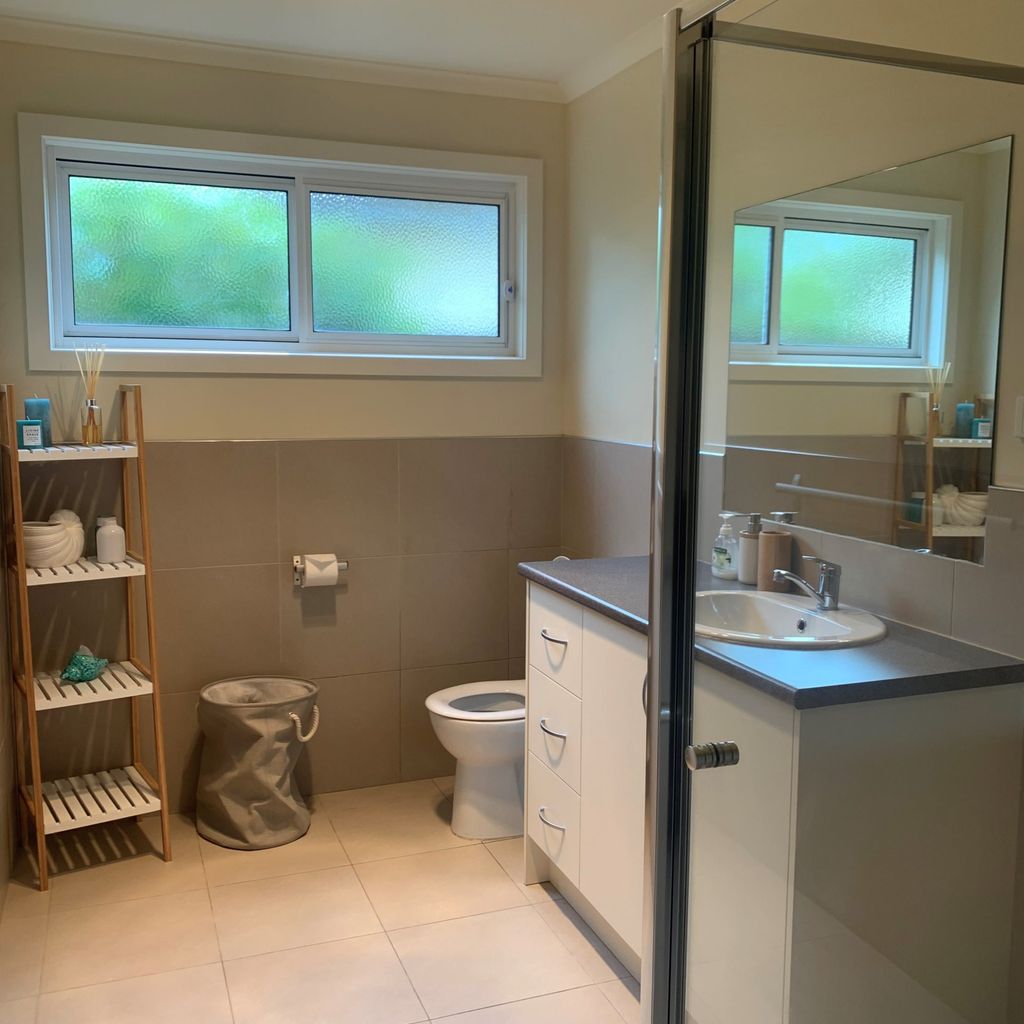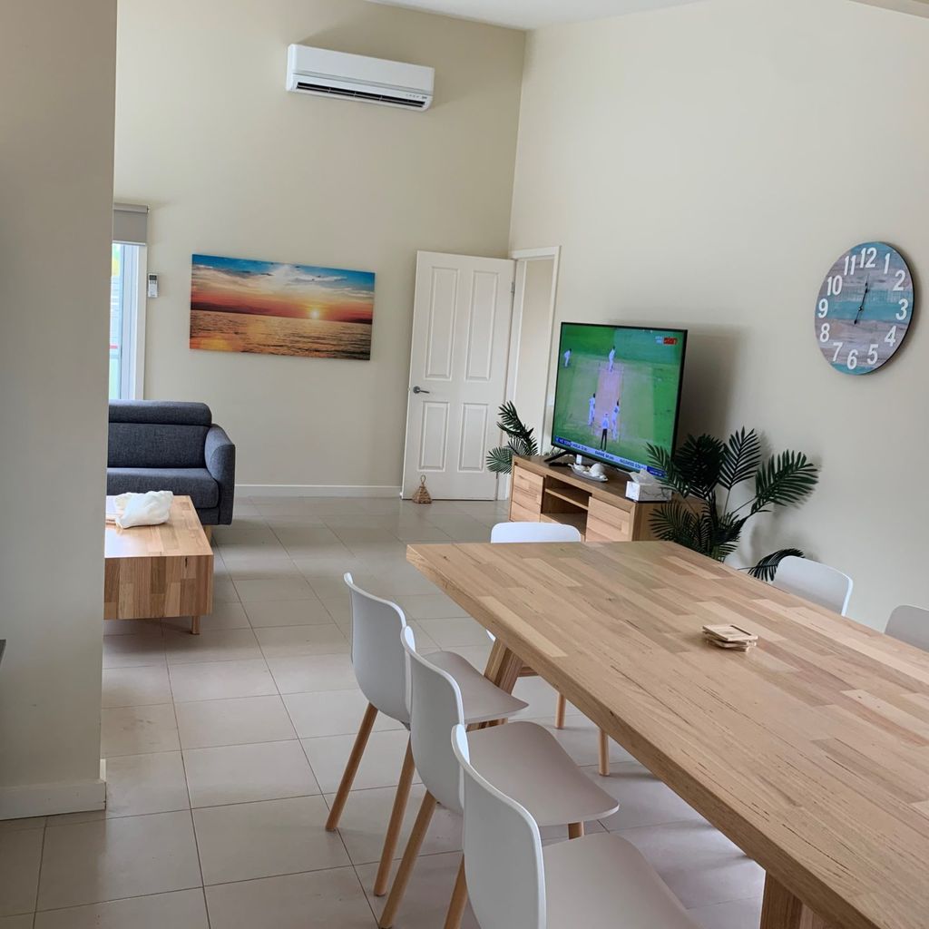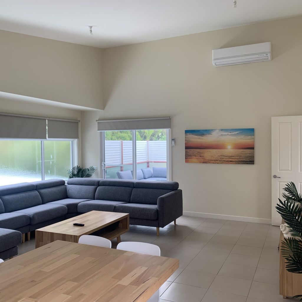 For those who love to cook, the modern kitchen includes appliances such as a dishwasher and microwave, along with thoughtful extras like stainless steel BBQ utensils, baking trays, and even a rice maker. The living area blends comfort and style, featuring a smart TV with streaming services and a selection of board games, perfect for cozy nights in. To ensure year round comfort, the home is fitted with a ceiling fan and reverse cycle wall mounted heating and cooling.