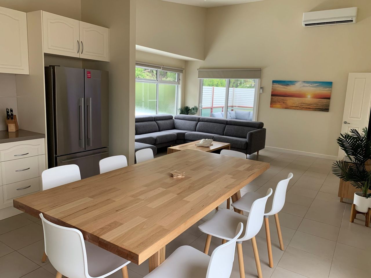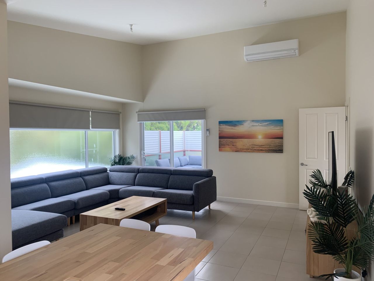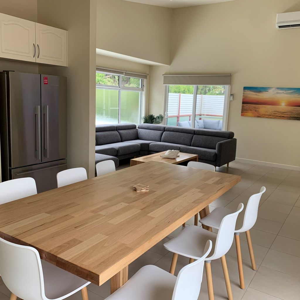 For those who love to cook, the modern kitchen includes appliances such as a dishwasher and microwave, along with thoughtful extras like stainless steel BBQ utensils, baking trays, and even a rice maker. The living area blends comfort and style, featuring a smart TV with streaming services and a selection of board games, perfect for cozy nights in. To ensure year round comfort, the home is fitted with a ceiling fan and reverse cycle wall mounted heating and cooling.