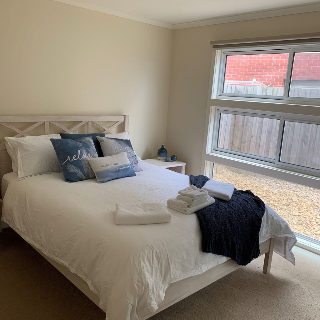 Contemporary On Cuttriss offers the perfect coastal retreat, just moments from Inverloch’s stunning Inlet Beach. Enjoy complimentary Wi-Fi and a beautiful sea view. Designed with comfort and convenience in mind, this modern home features two generously sized bathrooms, ideal for families or groups. A fully equipped laundry with a washing machine and dryer adds to the home’s practicality, making extended stays effortless. The 3 spacious bedrooms include room darkening blinds, comfortable beds and an abundance of storage space.