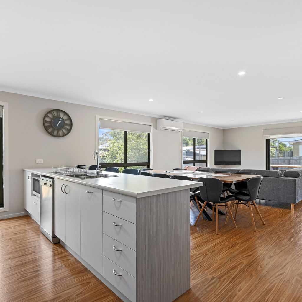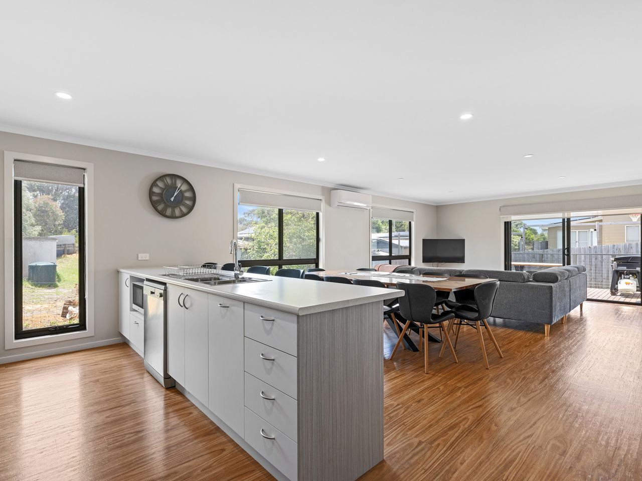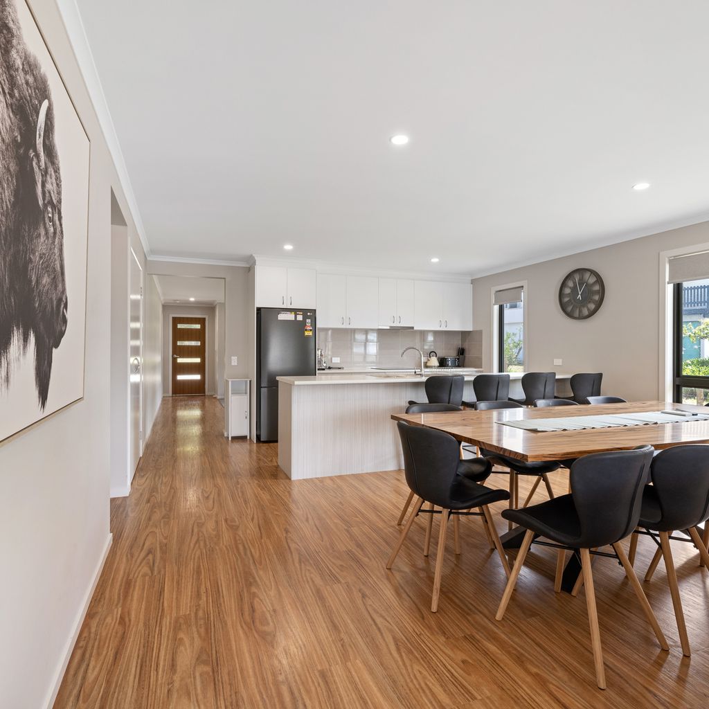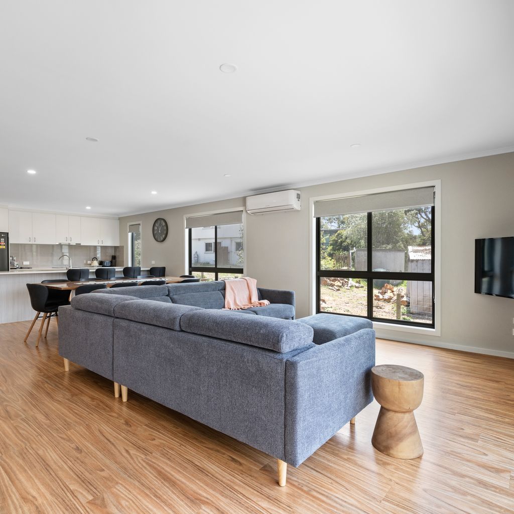 Welcome to Drift Away, your perfect holiday retreat in the heart of Venus Bay. This newly built property offers comfortable accommodation with four thoughtfully designed bedrooms: a master bedroom with a king-sized bed and ensuite (shower and separate toilet), a second bedroom featuring two bunk beds, a third bedroom with two single beds, and a fourth bedroom with a cozy queen-sized bed. The property includes two bathrooms: an ensuite off the master bedroom, and a second bathroom with a shower, a bath, and a separate toilet for added convenience.