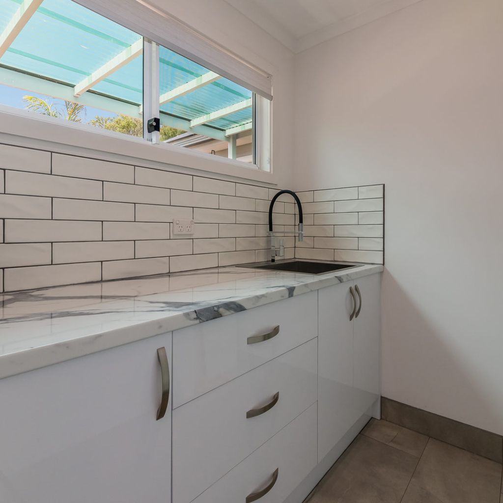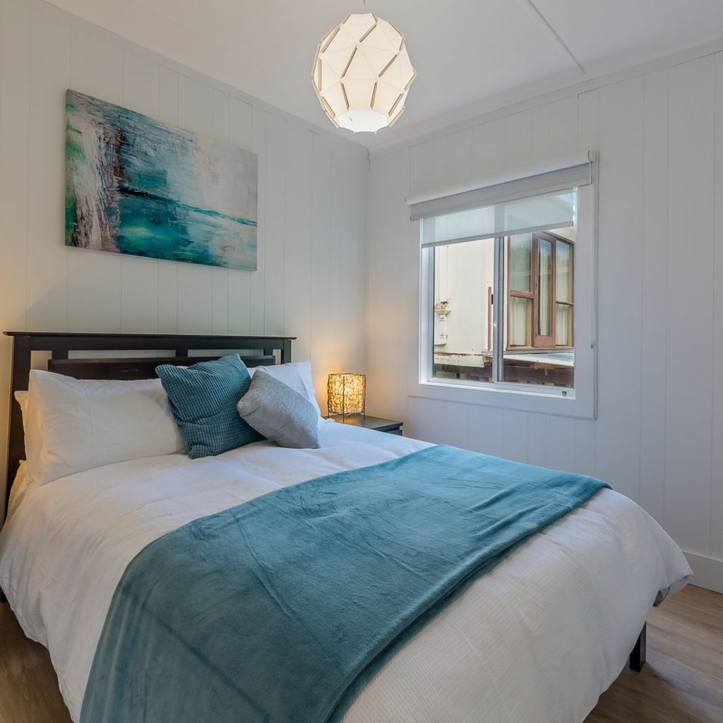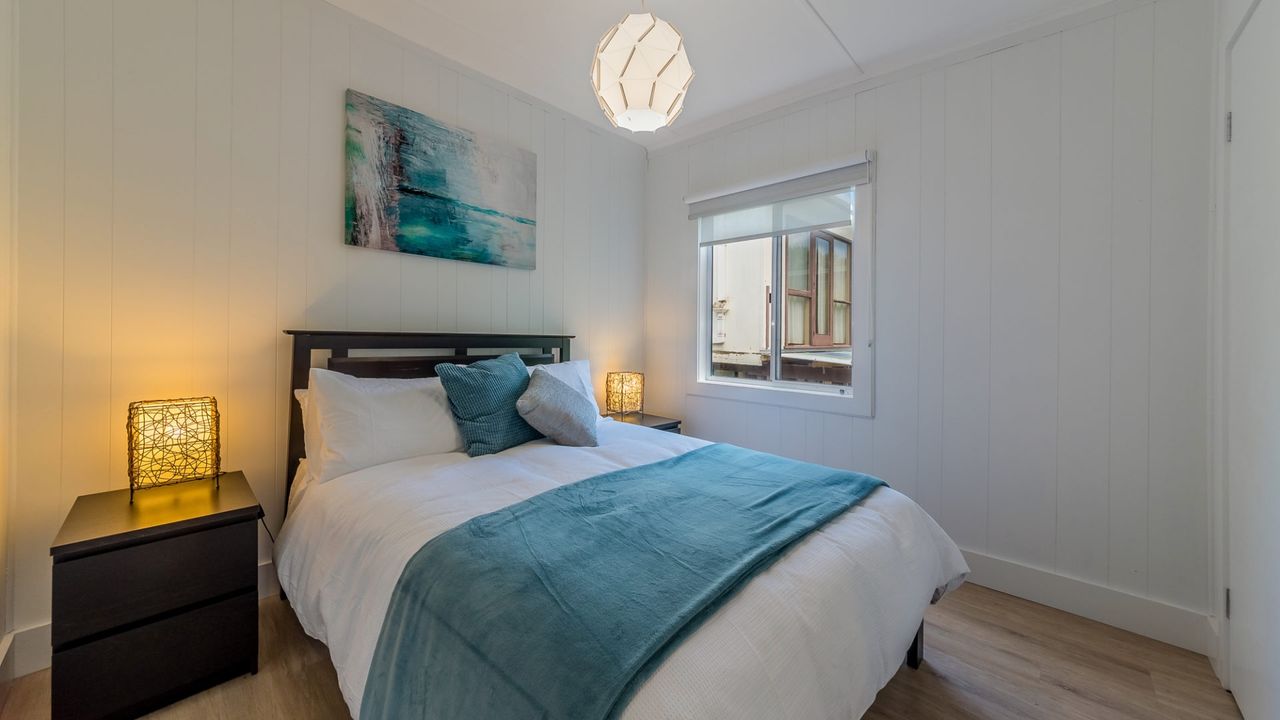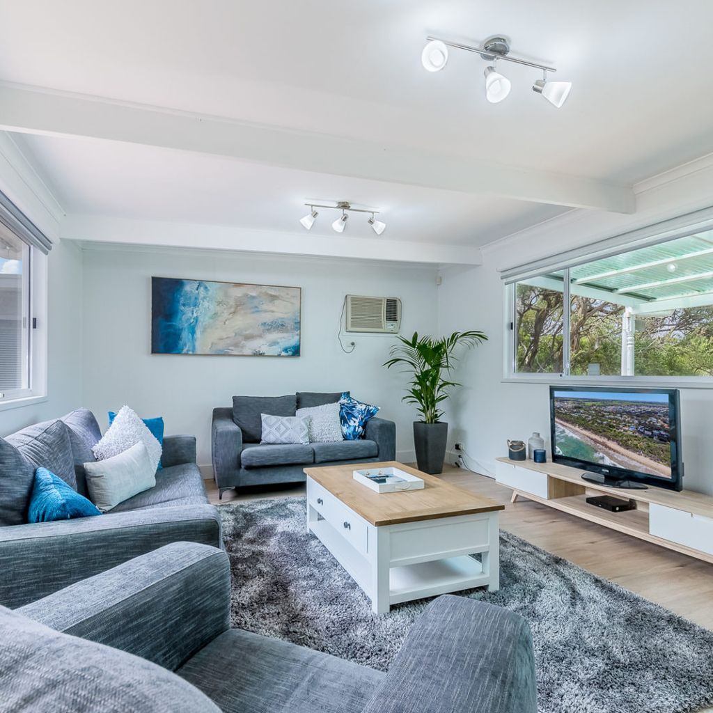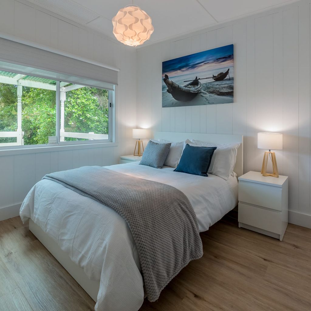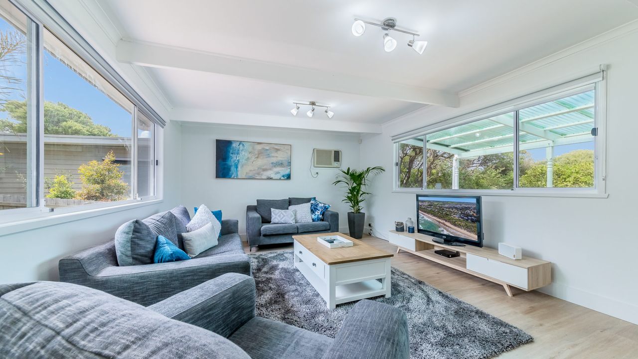 Step inside this cozy property and follow the main hallway through to a bright, open-plan kitchen, dining, and living area - beautifully modernised to create a relaxing space the whole family will love. The well-equipped kitchen features an electric oven, electric glass-top cooktop, and a handy two seater breakfast bar for casual meals. Adjacent is the dining area with an eight-seater table, opening directly onto an undercover front deck complete with an outdoor setting and lounge - perfect for enjoying your morning coffee or unwinding in the evenings.