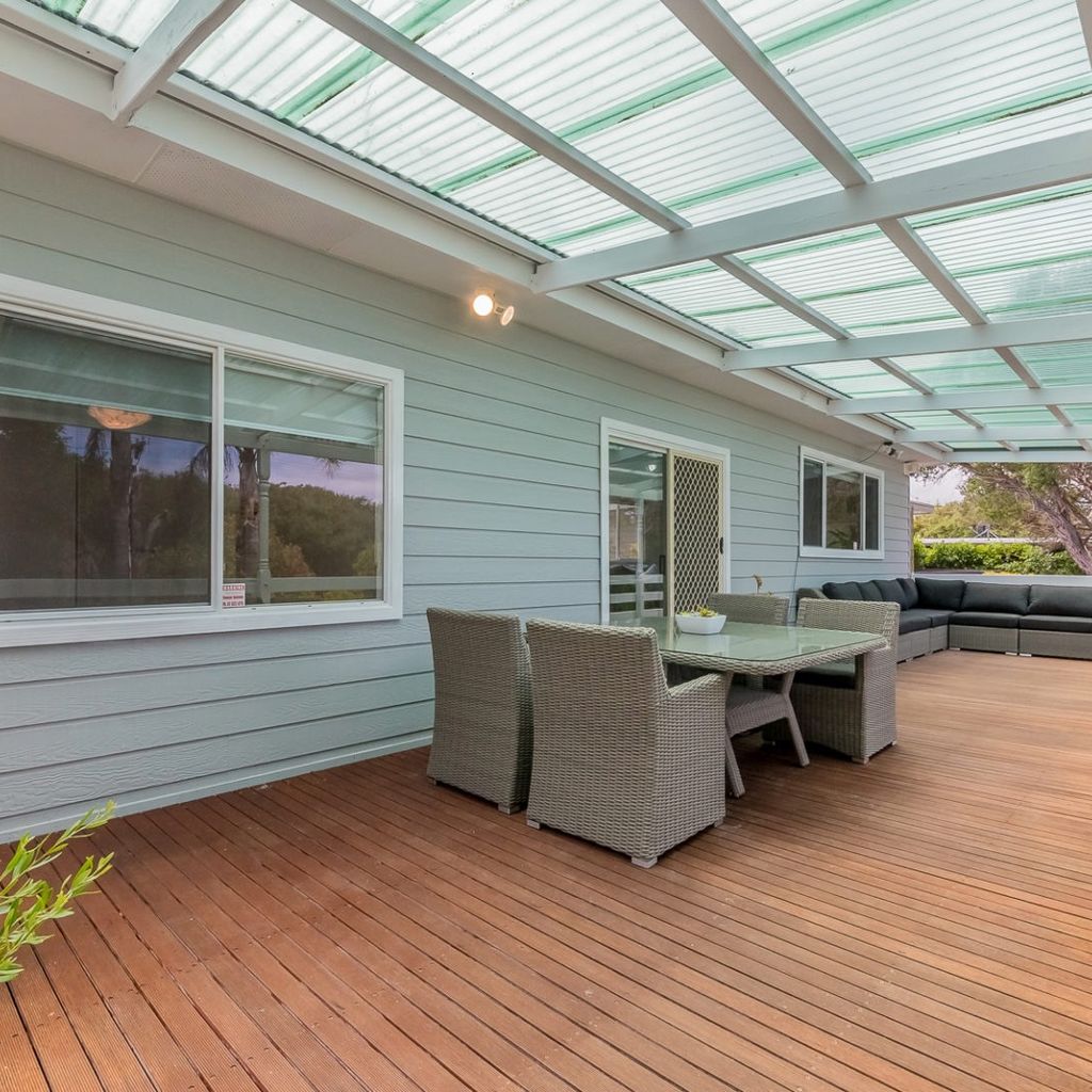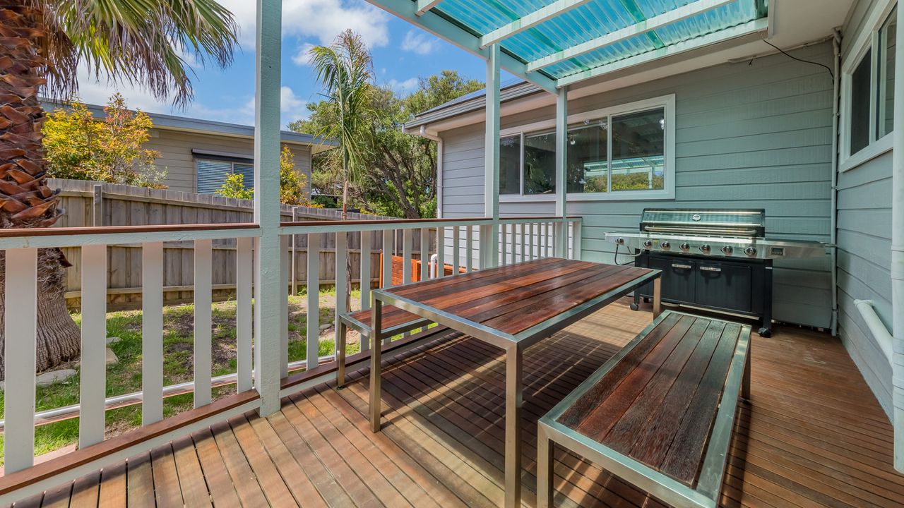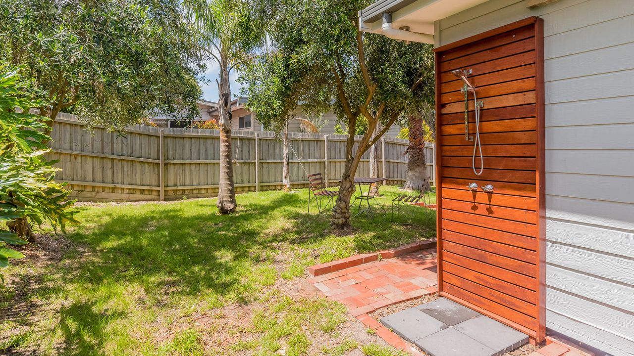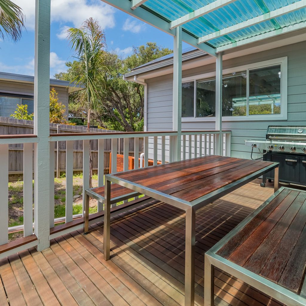 In addition to the front deck, guests can enjoy a second undercover deck at the rear of the property, complete with an outdoor setting and a gas BBQ - perfect for relaxed outdoor dining. The backyard also features a lovely grassed area and a convenient outdoor shower, ideal after a day at the beach. For parking, a double carport located beneath the house offers secure space for your vehicle, or even the boat