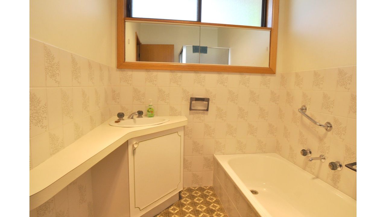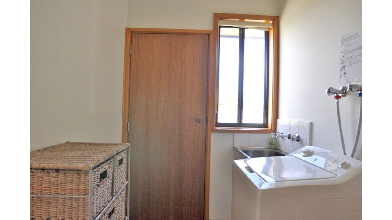All three of the bedrooms, as well as the family bathroom and laundry, come off of a central hallway. The master bedroom is located at the front a features a queen bed, built-in wardrobes and a wall-mounted, flat screen TV. Of the further two bedrooms, one has two sets of single bunk beds and the third, located off of the laundry, has another queen bedroom. The bathroom has a shower and bath as well as a separate toilet.