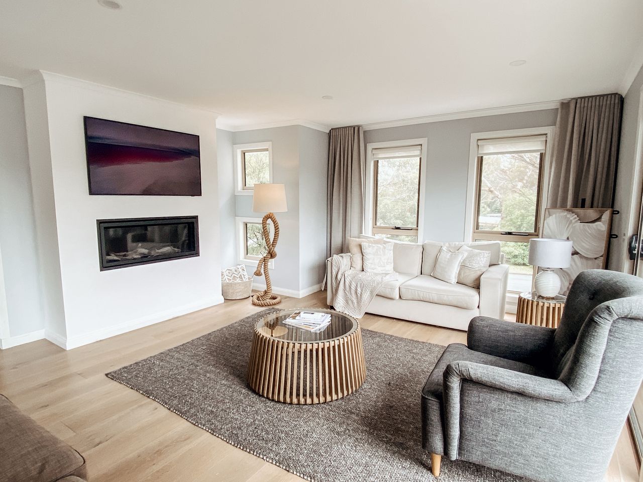 Upstairs you will find the main open plan living, dining and kitchen area which opens onto the expansive decking. The perfect spot for entertaining and enjoying your time with family and friends! You are also treated to a spectacular master bedroom complete with a large sized walk-in robe and ensuite. The kitchen is fully equipped with induction cooking, dishwasher, and central island bench. This area also features a newly installed gas fireplace. Just perfect for those cold winter nights! With coastal tones and a modern finish, this home seamlessly blends coastal living, sophistication, and comfort.