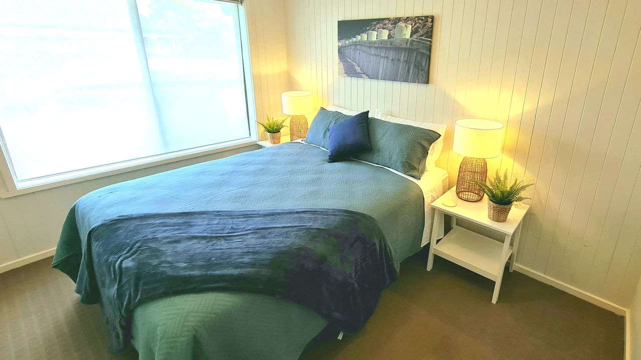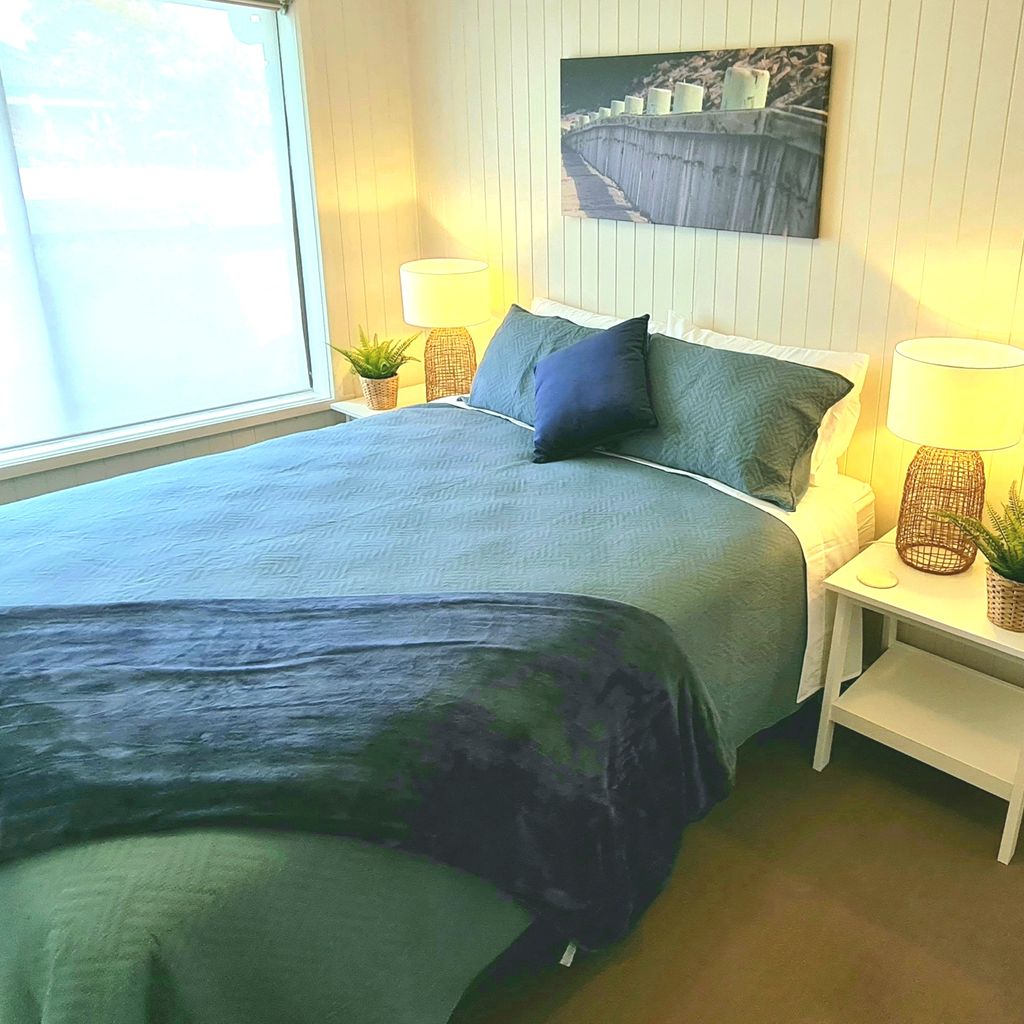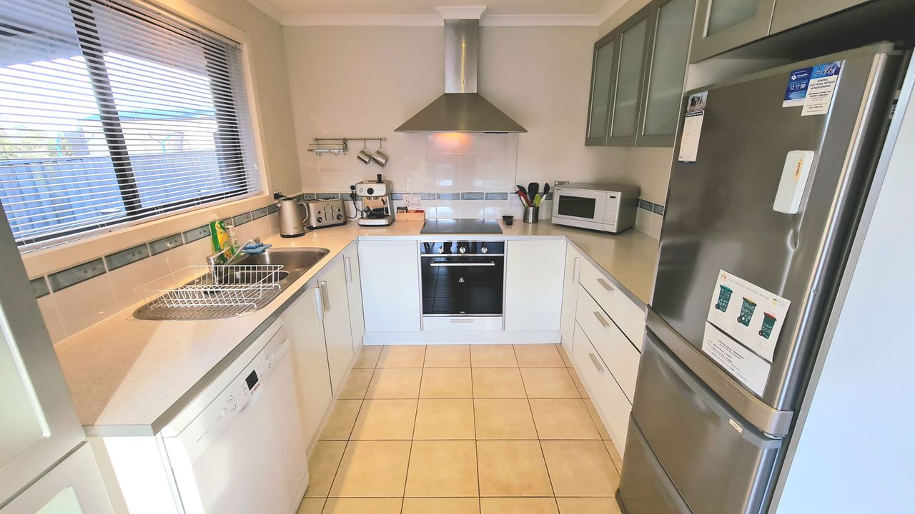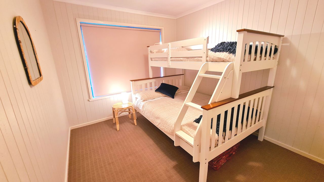 The well equipped kitchen has everything you need, including a dishwasher, espresso machine (requires ground coffee, not pods), toaster, kettle and a full set of pots and pans for all your culinary needs. The home comfortably sleeps families or groups. The master and second bedrooms each feature a queen bed, while the third bedroom offers a tri-bunk setup (double + single). The main bathroom includes both a shower and bath, perfect for young children, and there’s a second separate toilet for extra convenience. A separate laundry provides full washing facilities. Up to three vehicles can be parked in the driveway, and the fully fenced backyard is divided into two areas: one for entertaining and one large, grassy section for play and relaxation.