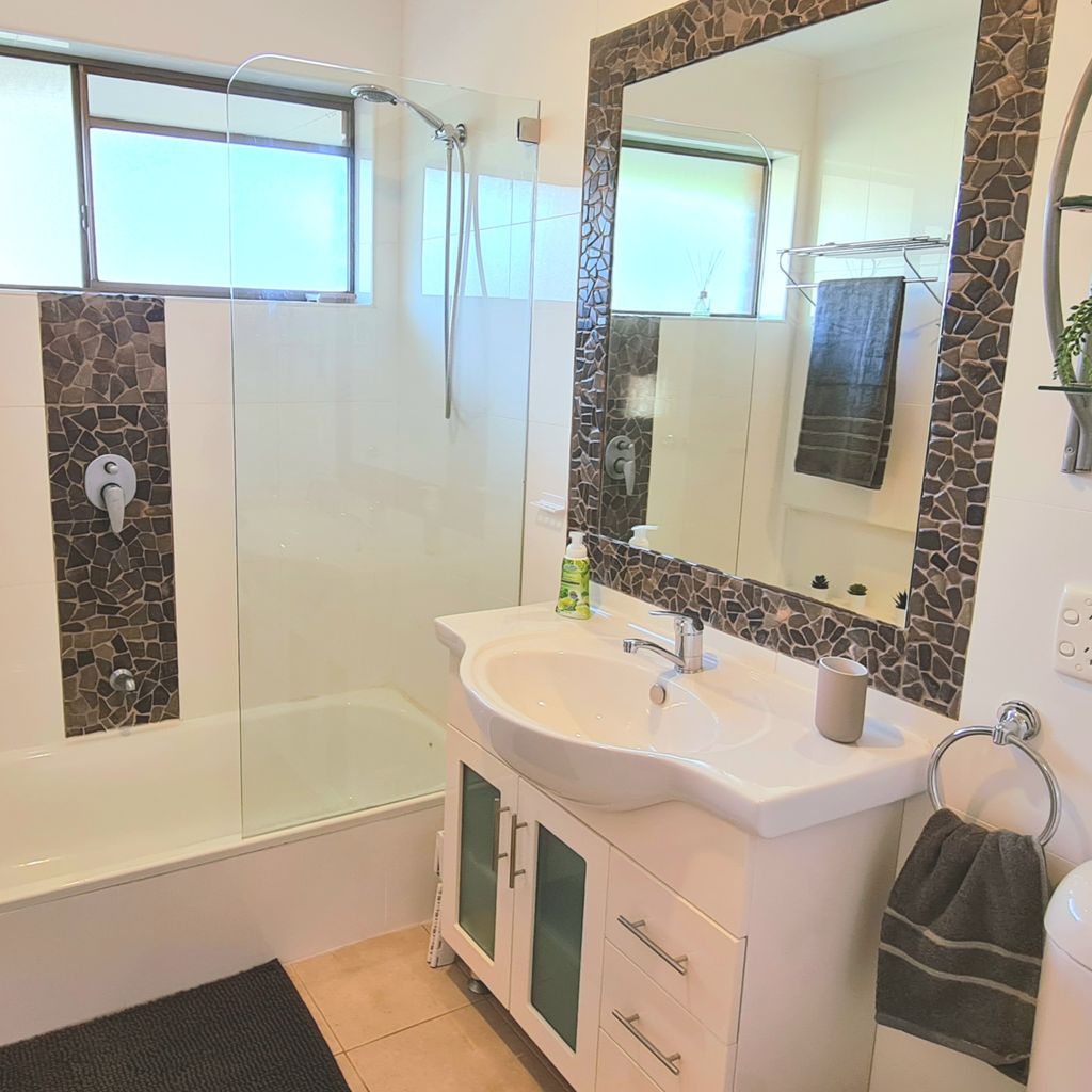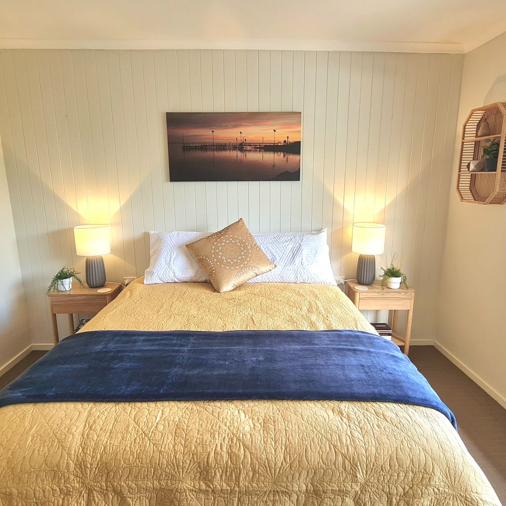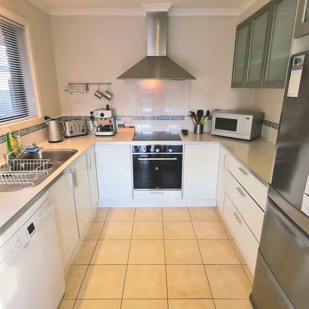 The well equipped kitchen has everything you need, including a dishwasher, espresso machine (requires ground coffee, not pods), toaster, kettle and a full set of pots and pans for all your culinary needs. The home comfortably sleeps families or groups. The master and second bedrooms each feature a queen bed, while the third bedroom offers a tri-bunk setup (double + single). The main bathroom includes both a shower and bath, perfect for young children, and there’s a second separate toilet for extra convenience. A separate laundry provides full washing facilities. Up to three vehicles can be parked in the driveway, and the fully fenced backyard is divided into two areas: one for entertaining and one large, grassy section for play and relaxation.