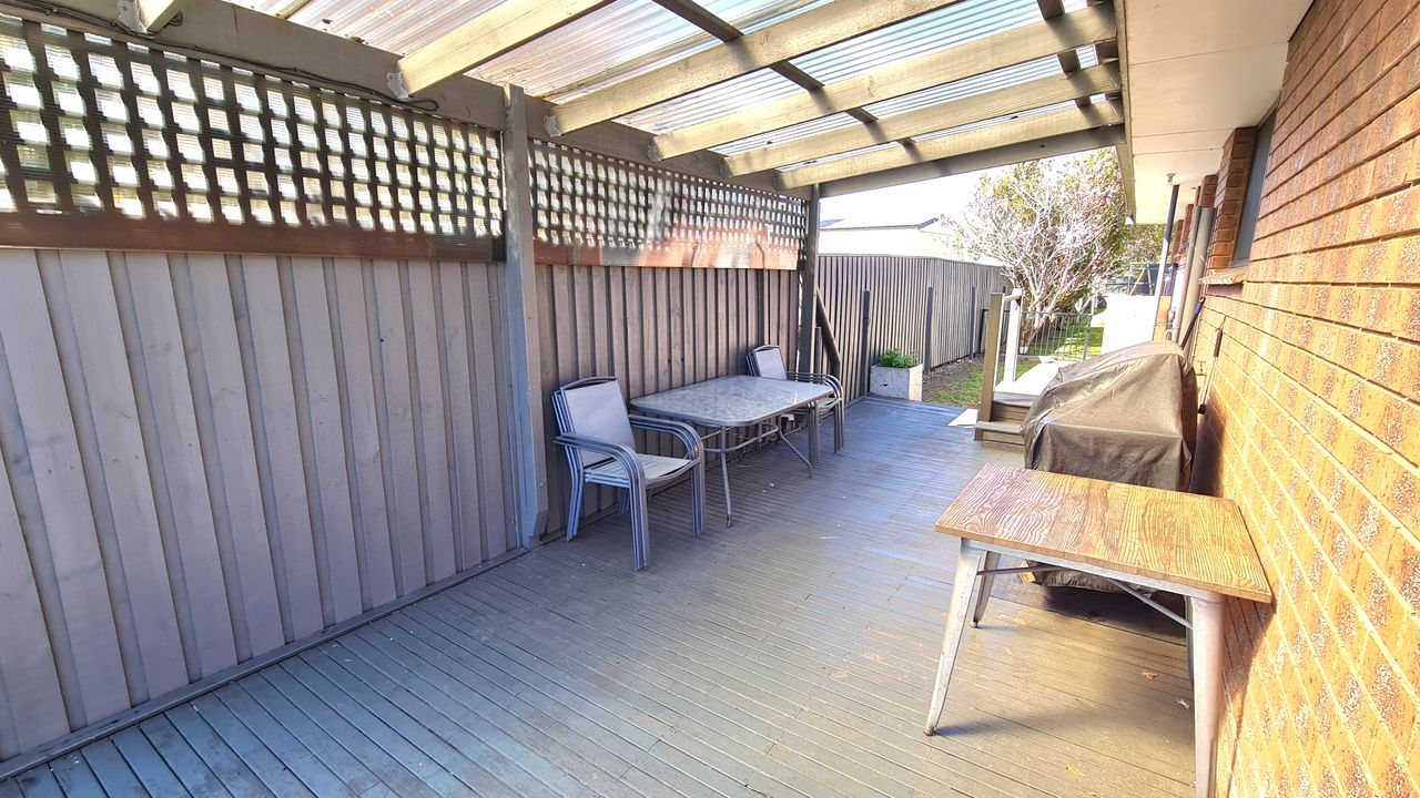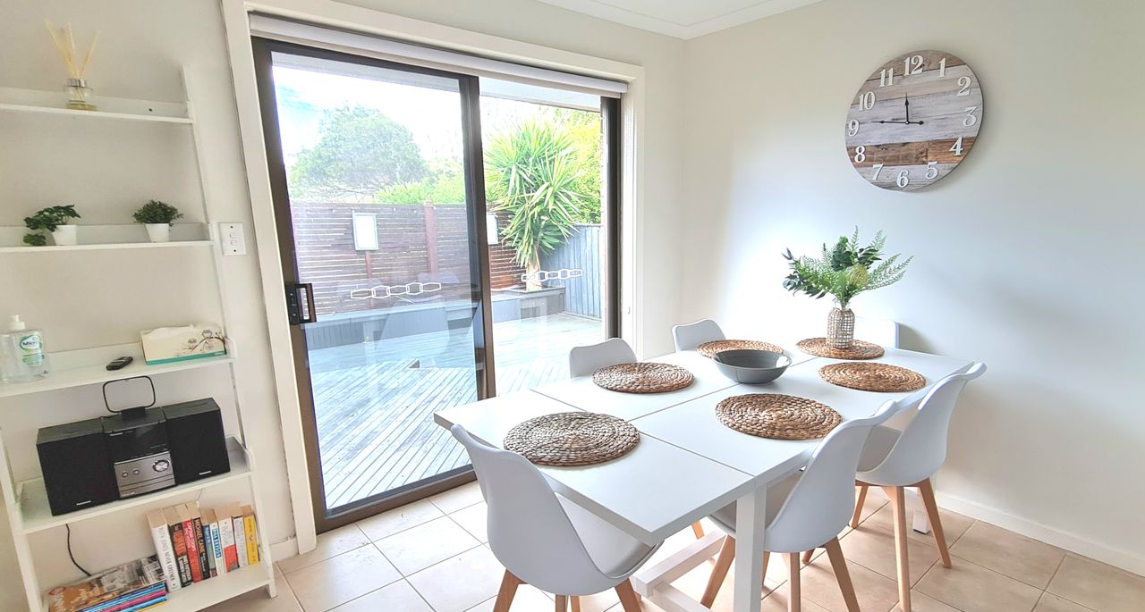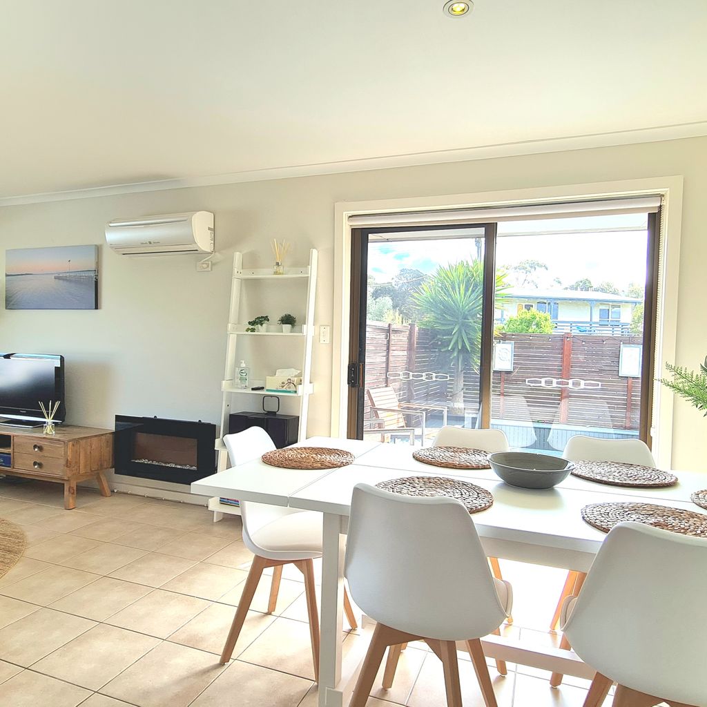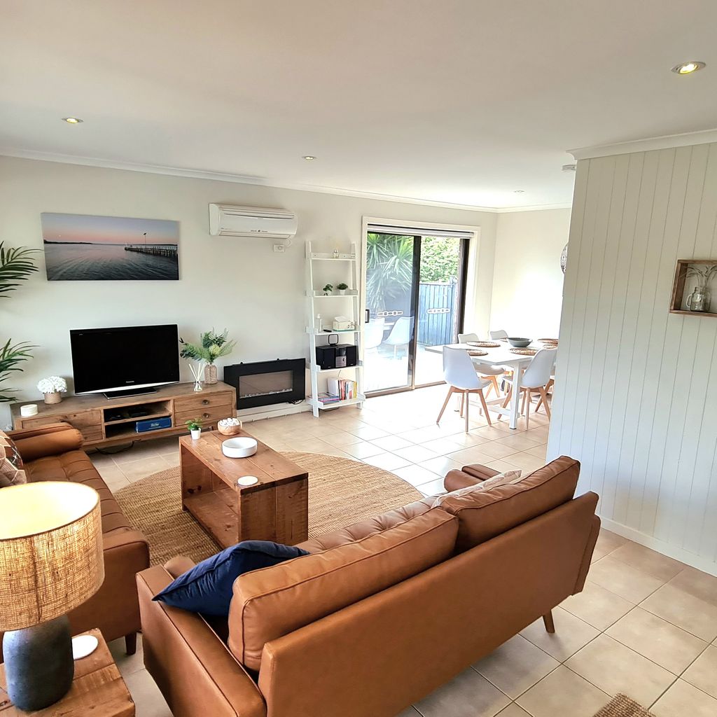 Start your Inverloch holiday in this peaceful court side retreat, just a short stroll from the Inlet Beach and within easy walking distance of the town centre. The property features a spacious north facing deck, perfect for entertaining or soaking up the sun, with a partially covered area for shade. After a fun day at the beach, rinse off the sand in the convenient outdoor shower. Inside, the open plan living area is designed for relaxation and socialising. Lounge on the comfortable sofas under air conditioning, listen to music with the sound system or gather around the electric wall fireplace for a movie night on the Smart TV.