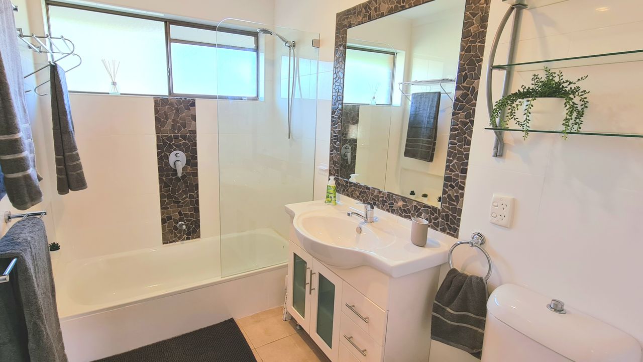 Meagan H - 8th February 2022We had a lovely stay at this property! It was clean and well kept with a good selection of kitchen equipment, lots of hot water, great water pressure, and good wifi. The outdoor shower was so useful and there's heaps of outdoor lawn space in the back as well as a great dining area on the patio. It's walking distance to the beach and we'll definitely be staying here again.