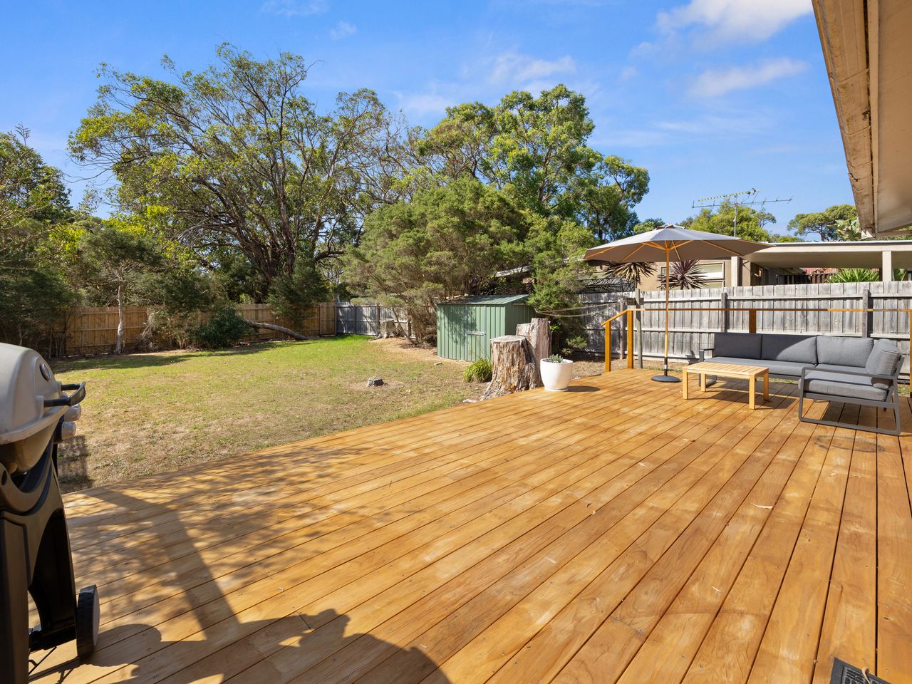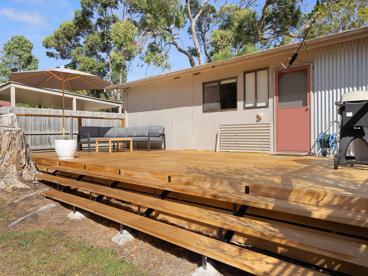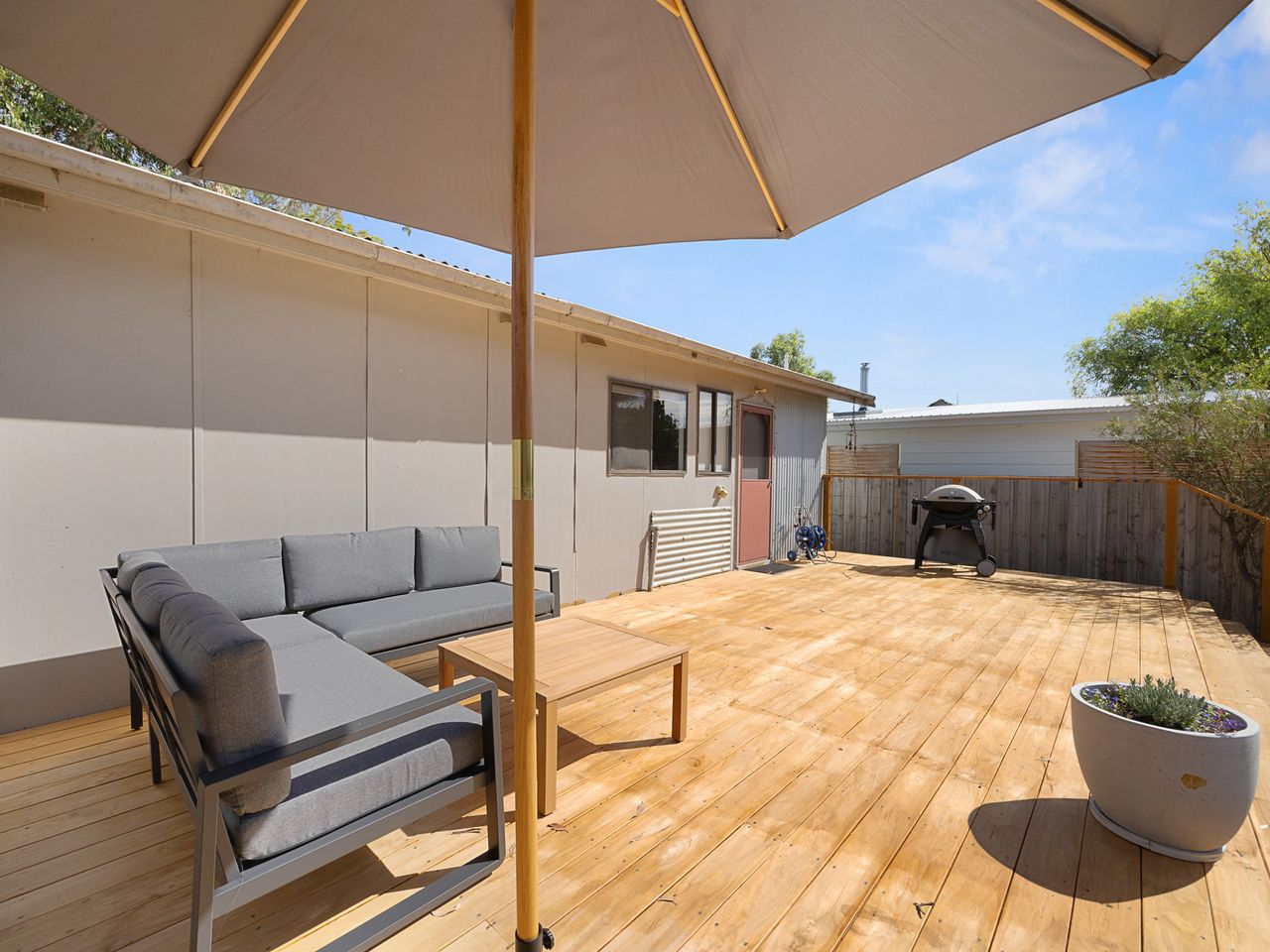 A large back deck with an L-shaped lounge, a BBQ and pet friendly fenced garden backing on to the wooded Thompsons estate nature reserve is a great way to take your indoors outdoors and enjoy the short trails in the natural bushland. Inverloch Tennis Club is just round the corner to book the courts for a game of tennis.