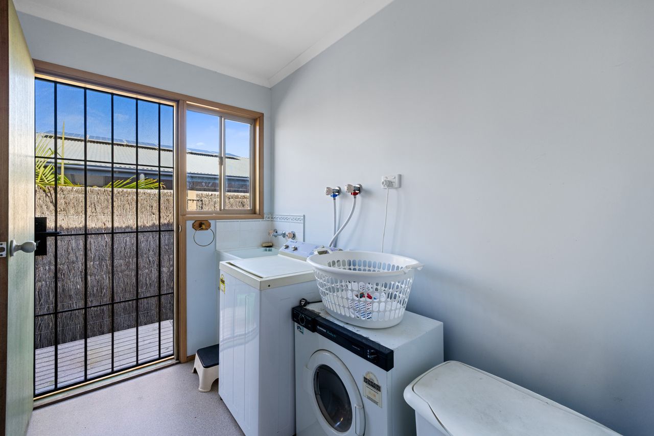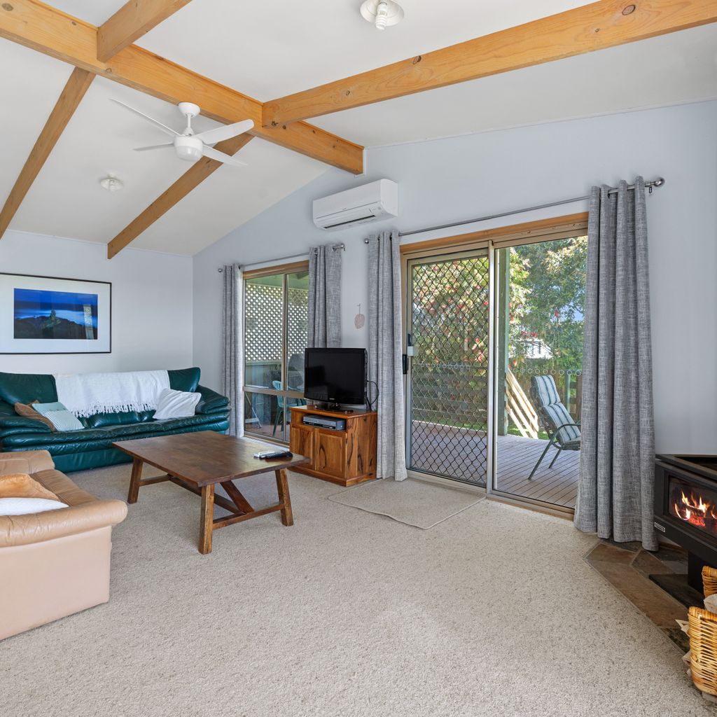 Additional amenities ensure a comfortable and convenient stay for all guests. Stay cool on warmer days with air conditioning and ceiling fans, or cozy up by the wood heater during cooler evenings. The home also offers Wi-Fi, a fully equipped laundry with washing machine and dryer, and off-street parking for up to three vehicles.