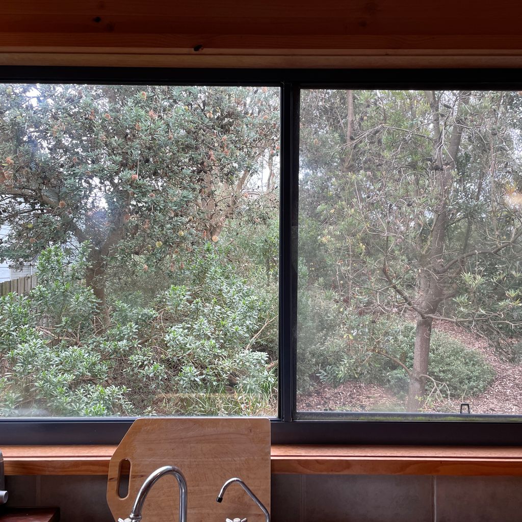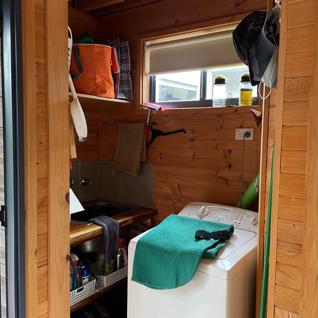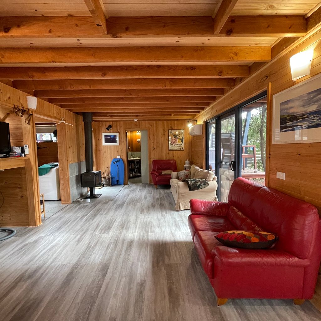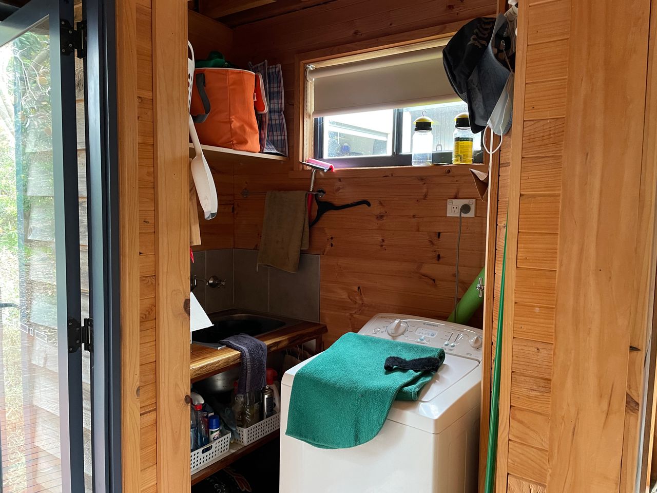 Upstairs you will enjoy cooking overlooking the native gardens in the large, modern open-plan kitchen and dining space. It really does feel like a treehouse as you will be sleeping amongst the treetops in the 2 bedrooms also located upstairs, the house can accommodate up to 5 people, the master bedroom sleeping up to 2 in a Queen bed, and the second bedroom accommodates up to 3 people in the tri-bunk.
