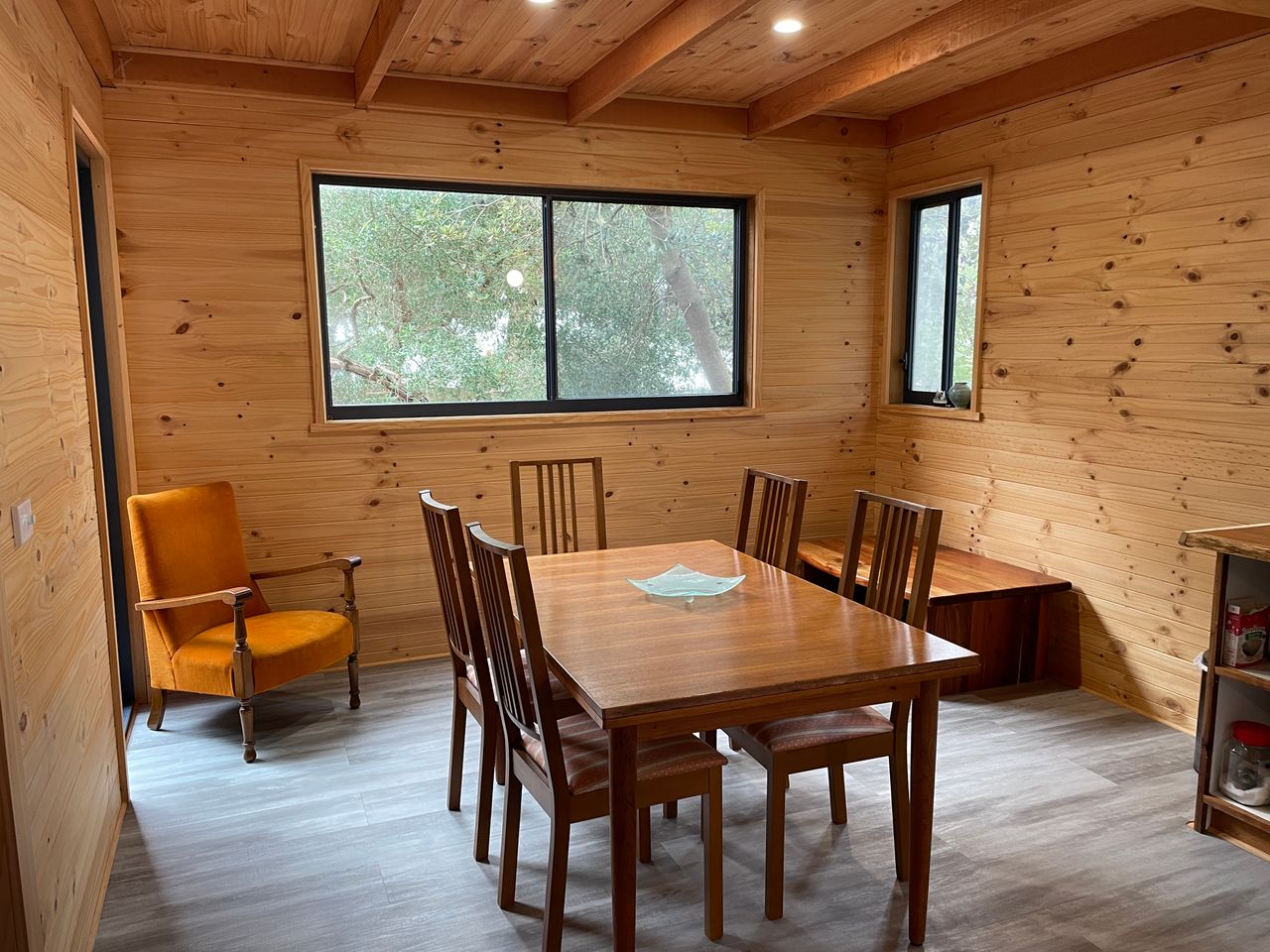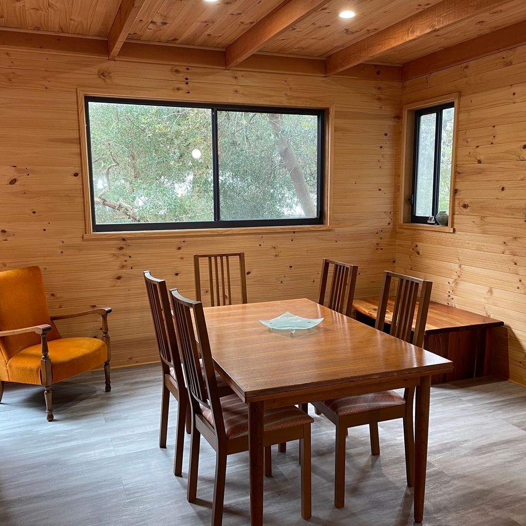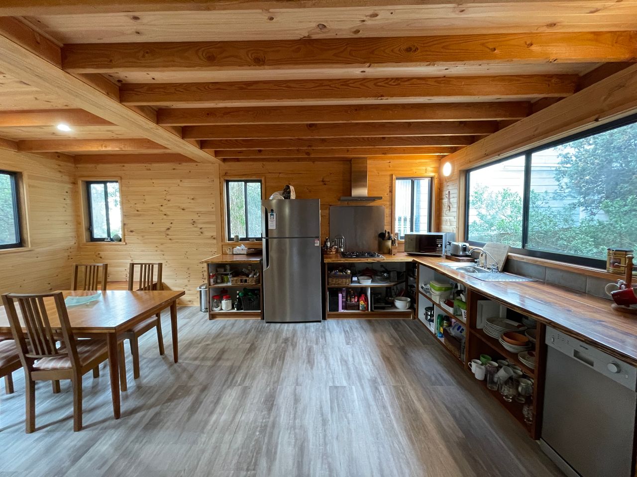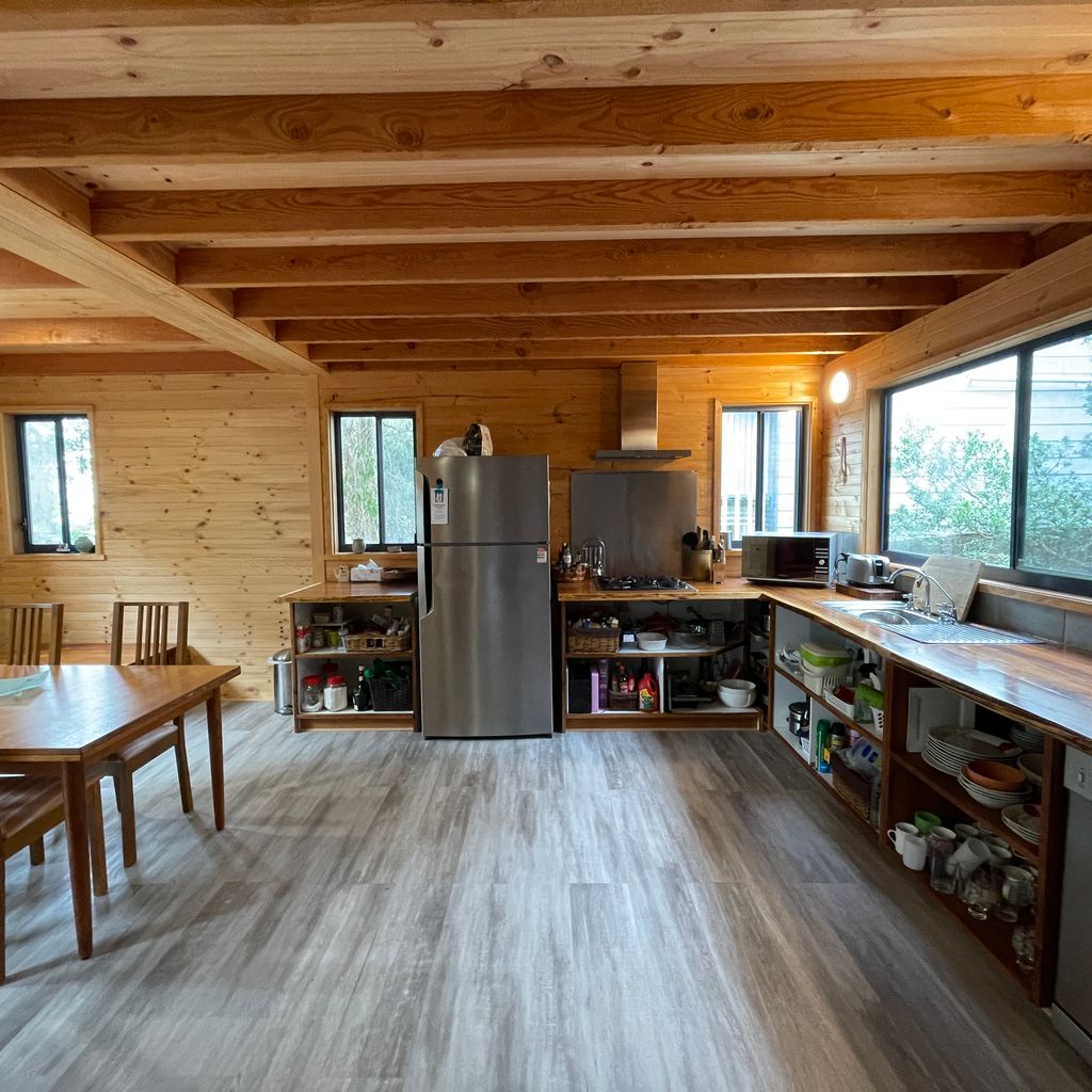 Upstairs you will enjoy cooking overlooking the native gardens in the large, modern open-plan kitchen and dining space. It really does feel like a treehouse as you will be sleeping amongst the treetops in the 2 bedrooms also located upstairs, the house can accommodate up to 5 people, the master bedroom sleeping up to 2 in a Queen bed, and the second bedroom accommodates up to 3 people in the tri-bunk.