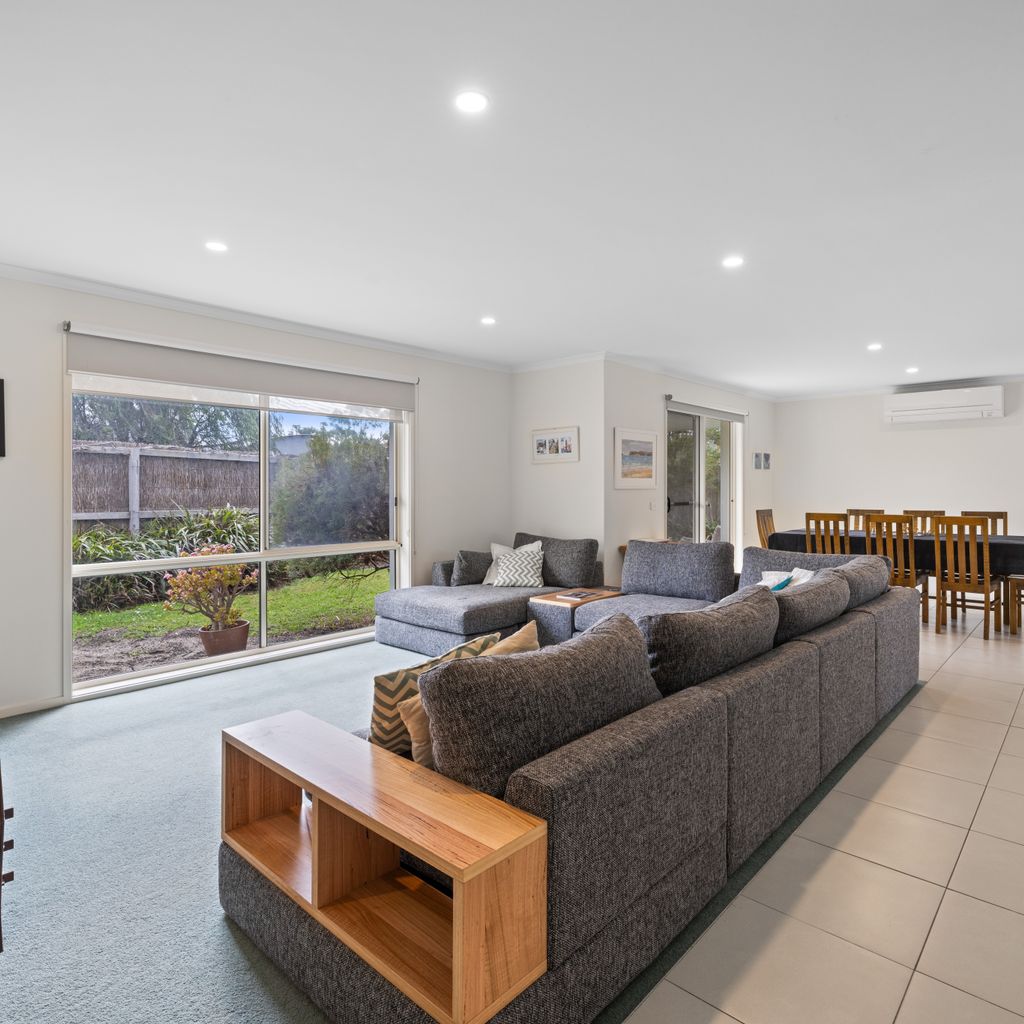 Welcome to Ohana Beach House, your spacious and well appointed coastal retreat. This holiday home features a large, light filled open plan living and dining area, complete with comfortable lounge seating, a flat screen TV, DVD player and a wall mounted reverse cycle split system, perfect for warm summer days or cosy seaside winters.