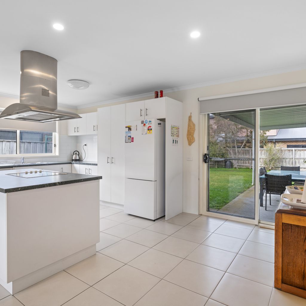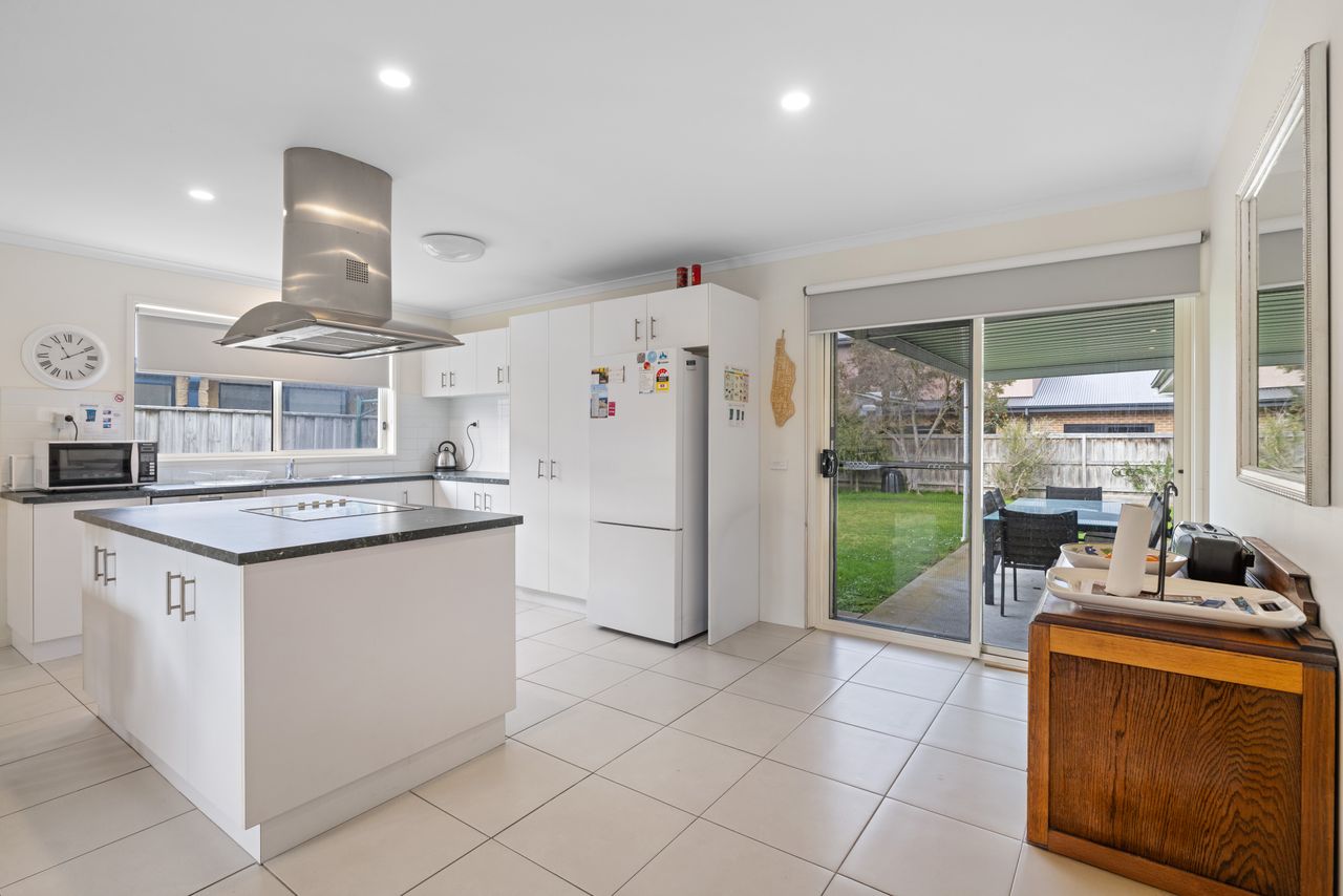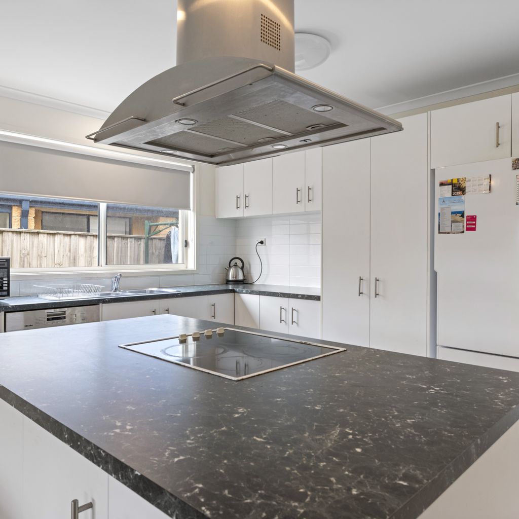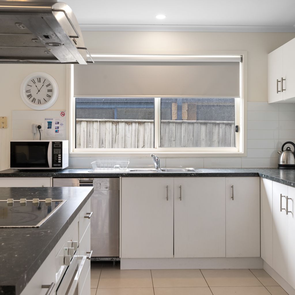The kitchen is fully equipped with crockery and cutlery and features a spacious island bench with a built in stovetop, creating a central gathering spot where everyone can come together while meals are prepared. A modern laundry with direct backyard access, adds to your convenience. Your furry friends are welcome too! While pets are not permitted inside, the securely fenced property and covered deck (just off the kitchen and living area) mean they can stay close, sheltered and comfortable no matter the weather conditions. Whether you’re a large family, a couple of smaller families or a group of friends, Ohana Beach House offers the perfect combination of space, comfort and coastal charm, just minutes from the beach and Inverloch's main street.