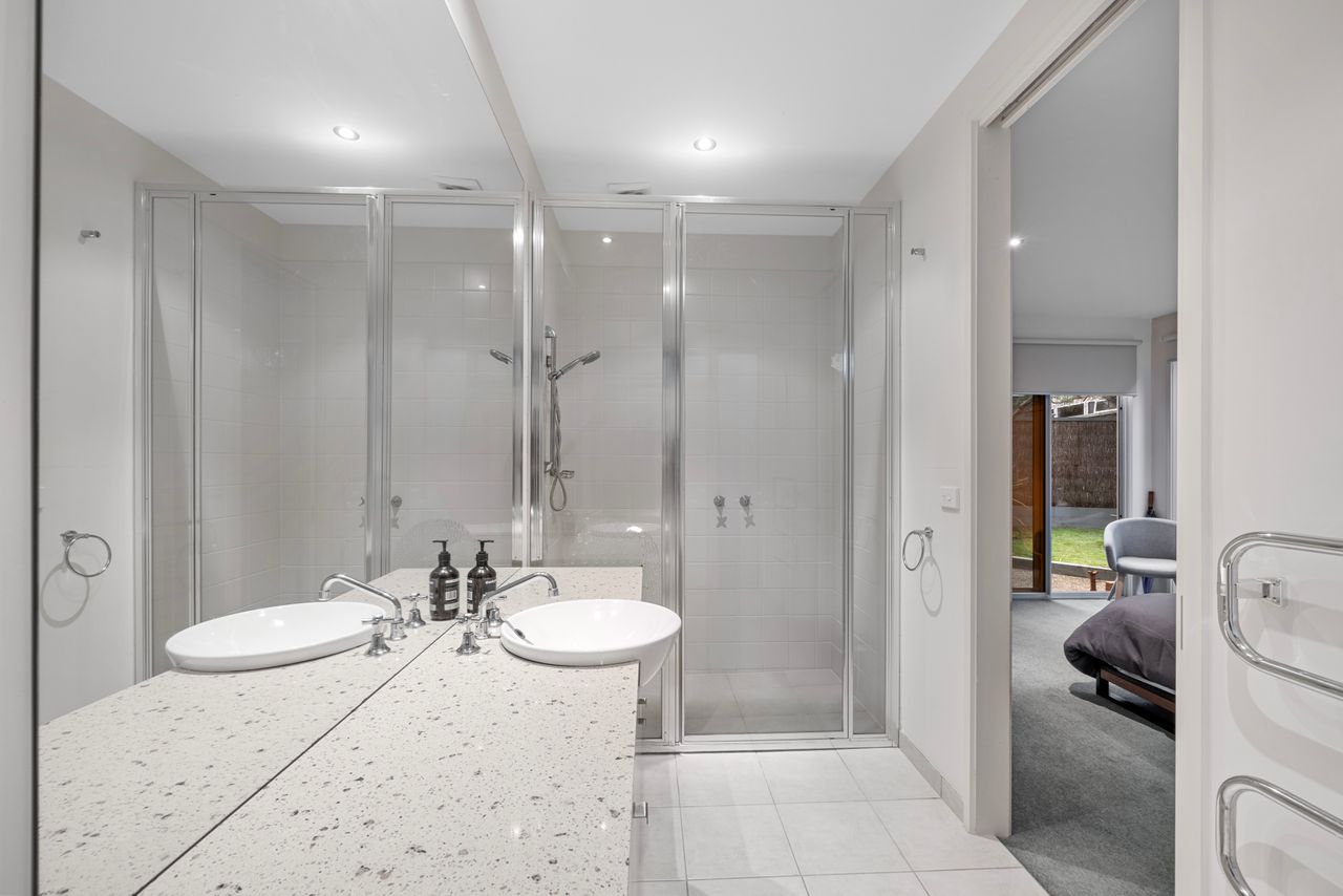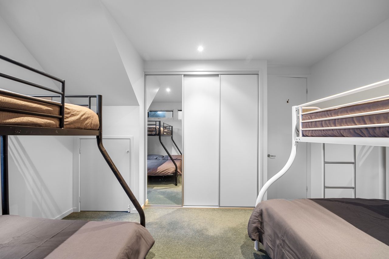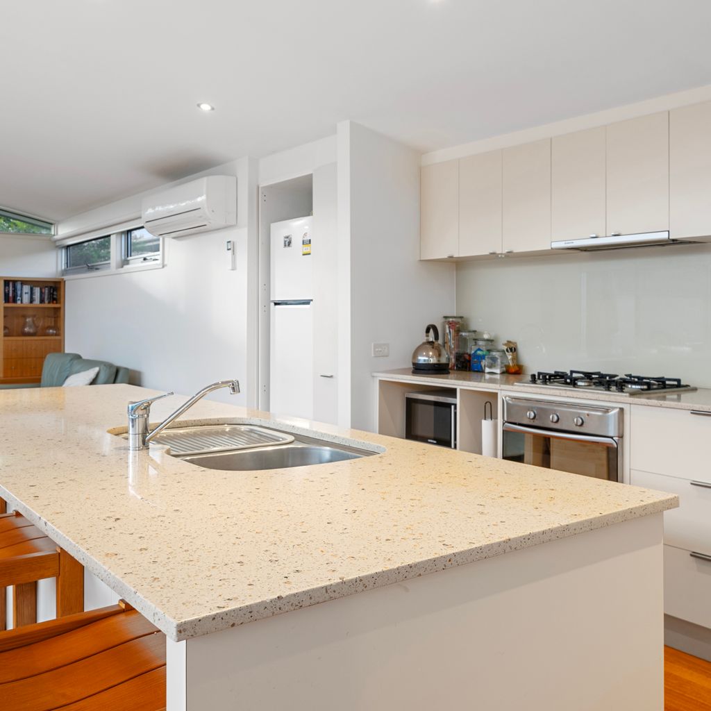 Discover Sandcastle Haven, your perfect coastal getaway just a 1 minute stroll from Inverloch’s stunning Surf Beach and surrounded by seaside charm. Accommodating up to eight guests, Sandcastle Haven is thoughtfully designed for a memorable getaway. Upstairs, you’ll find the bright open plan living and dining area, complete with a convenient powder room. Downstairs features two spacious bedrooms. The master bedroom includes a queen bed, ample storage, a TV, split system and a private ensuite. The second bedroom includes two tri bunk beds, split system, a TV and plenty of movies making it perfect for kids or groups to stay. A central bathroom with shower and toilet, plus a well equipped laundry space with a washer and dryer adds to the convenience.