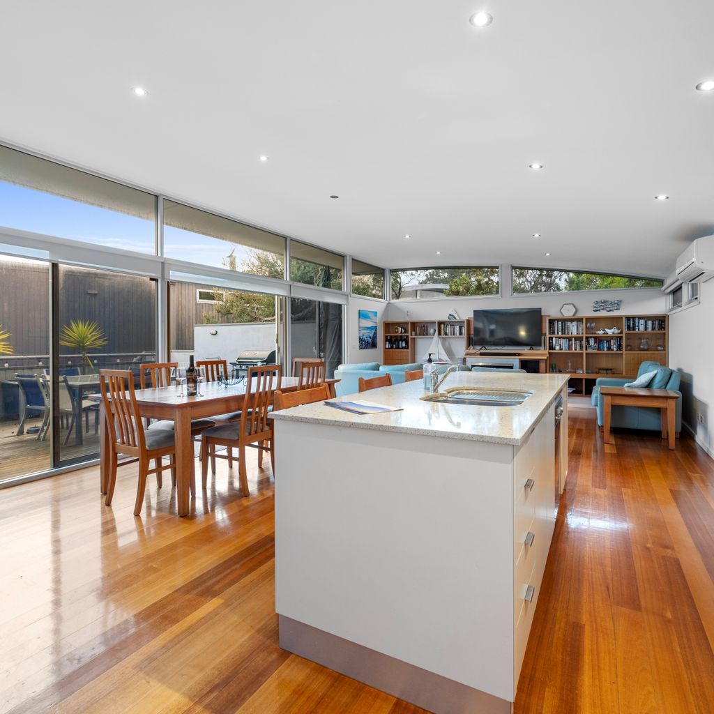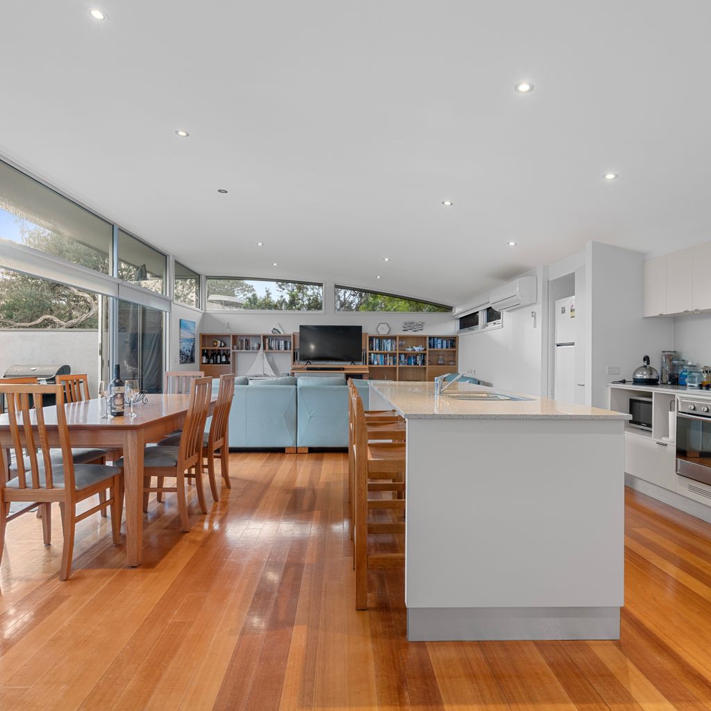 The fully equipped kitchen includes a large island bench, oven, stove, dishwasher and a range of utensils you need to prepare meals with ease. The living area is air conditioned with a wall mounted split system and features comfortable couches, a TV, and Wi-Fi, ideal for relaxing after a day at the beach. Step outside to enjoy a BBQ on the generous deck or unwind around the fire pit in the private backyard. Pets are welcome both indoors and outdoors, so your furry companions can join the adventure too! Please note that while the yard offers privacy, it is not fully enclosed. Please note: Inverloch Surf Club is seasonally patrolled.