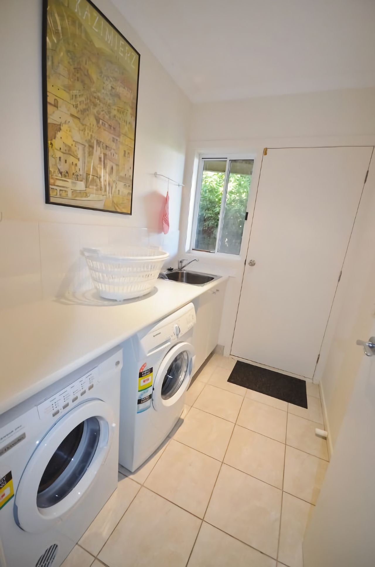 Step inside to find two bedrooms located downstairs, along with a conveniently accessible bathroom for guests. You'll also find a full laundry and access to a private courtyard for added comfort and functionality. Head upstairs to the open plan kitchen, dining and living area, thoughtfully furnished for comfort. Upstairs features a spacious master bedroom complete with a walk in robe and a stylish two way ensuite. A separate office space is also available, perfect for guests on a working holiday or needing a quiet place to focus.