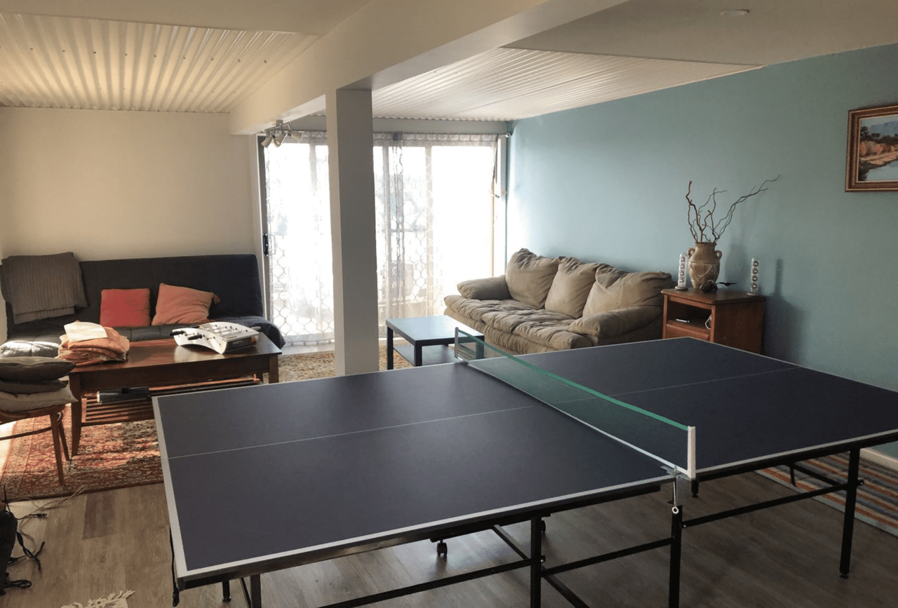 Downstairs the large rumpus room ensures the kids have a place to hang out after those long beach days. The rumpus room has a table tennis table and a fold-out sofa bed.