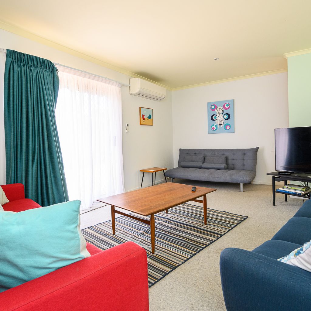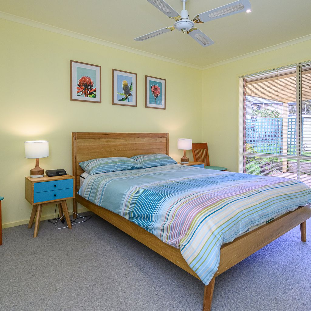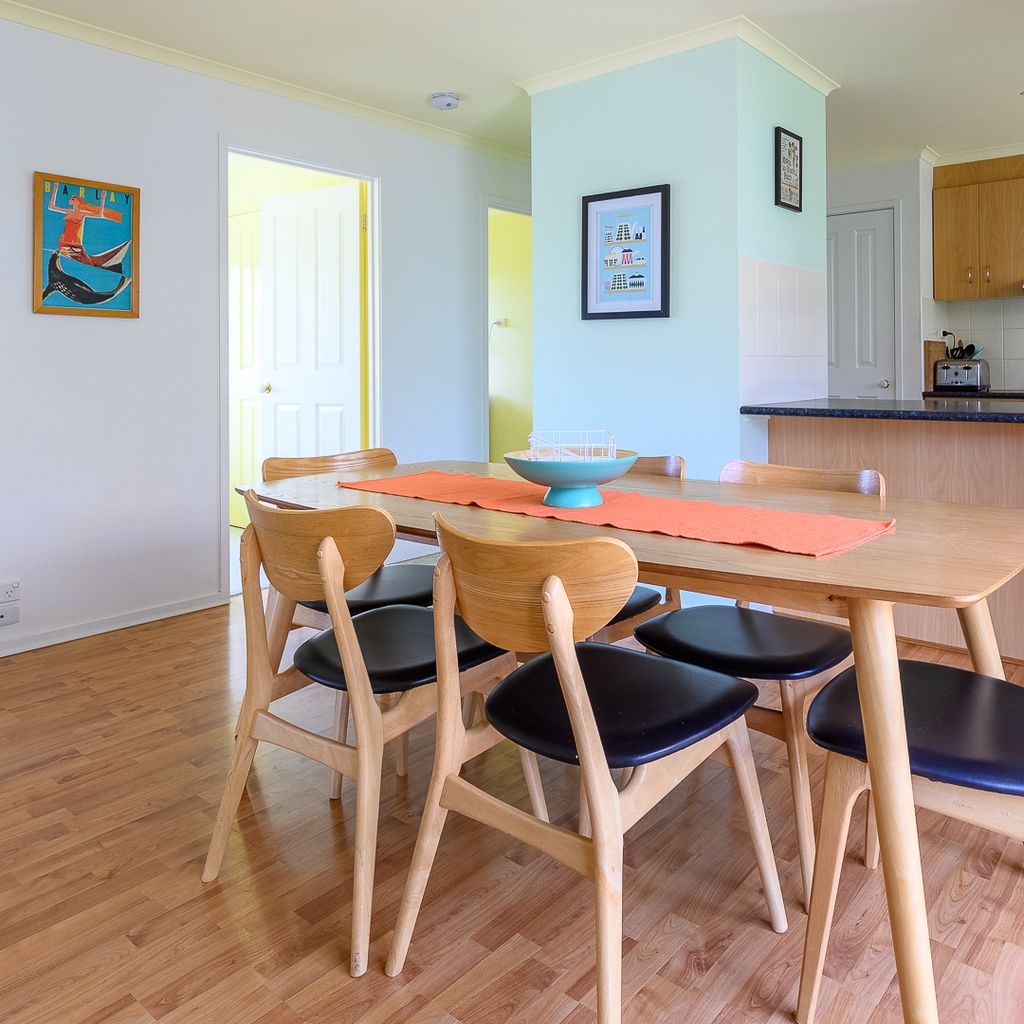 With a blend of modern and retro styling, this spacious four bedroom home comfortably accommodates up to 8 guests and is sure to impress. Two queen bedrooms overlook the garden, with the master bedroom boasting an ensuite with a shower and toilet. The additional bedrooms include one with two single beds and another with a double bed, all equipped with built-in robes. The main bathroom offers a full size bath, shower and a separate toilet. A functional laundry with a washing machine and undercover clothesline adds extra convenience.