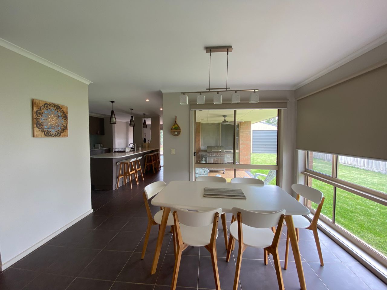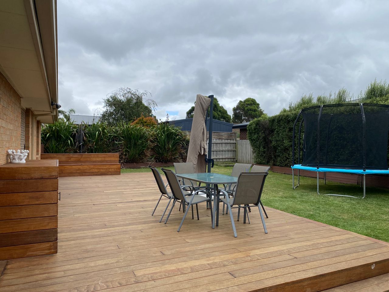 From the kitchen area, you can open up large sliding doors where you will find an undercover area with seating and a barbeque. Towards the back of the house and off from the main living area, the backdoors extend out to a spectacular outdoor entertainment area, featuring an outdoor dining, umbrella and trampoline. The spacious and open backyard is perfect for children to enjoy the freedom of running around in a fully fenced and secure yard.
