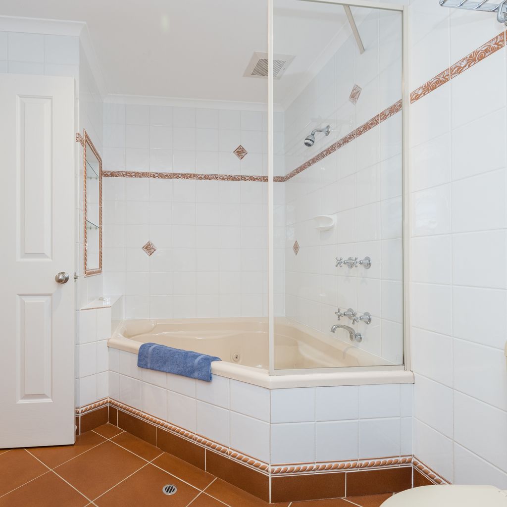 Bathroom 1: Shower over spa bath and toilet
