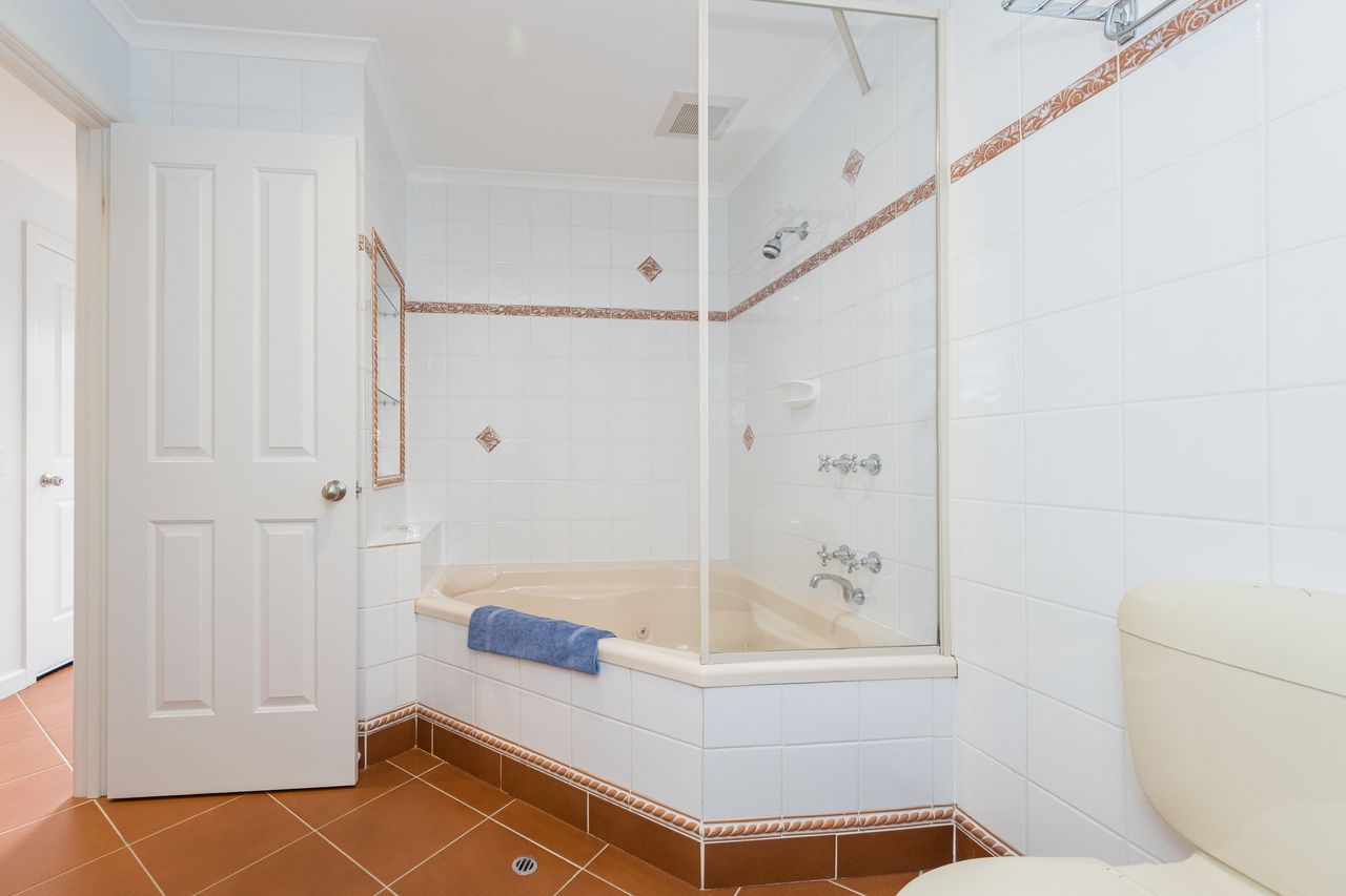 This two storey unit features the main living areas upstairs, while the bedrooms and bathrooms are located downstairs, offering a practical and comfortable layout. Both bedrooms are appointed with queen-sized beds, with linen and towels included, and each provides access to a private, covered outdoor sitting area. The main bathroom, accessible from both the master bedroom and the hallway, features a spa bath with shower, vanity and toilet, while a separate toilet is conveniently located next to the laundry, which comes equipped with a washer and dryer.