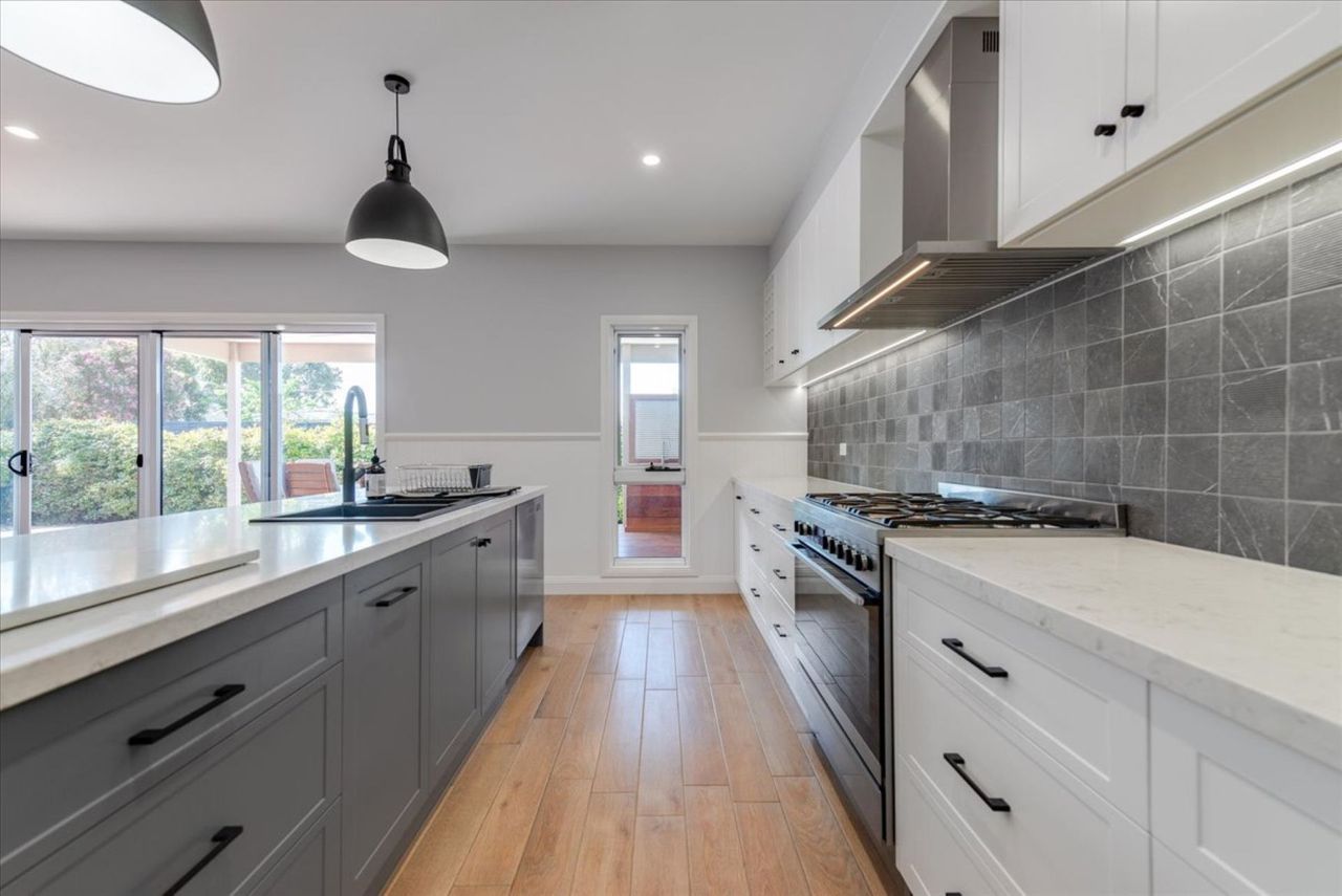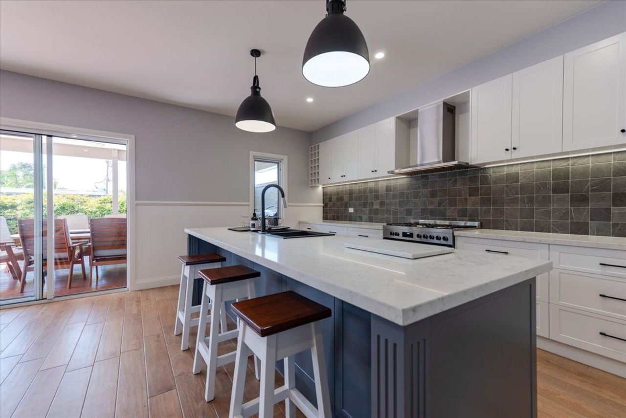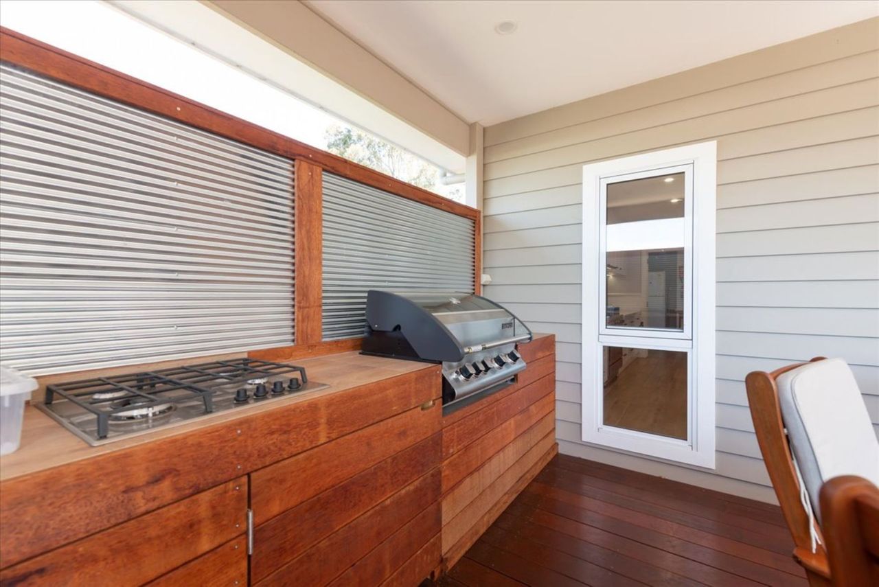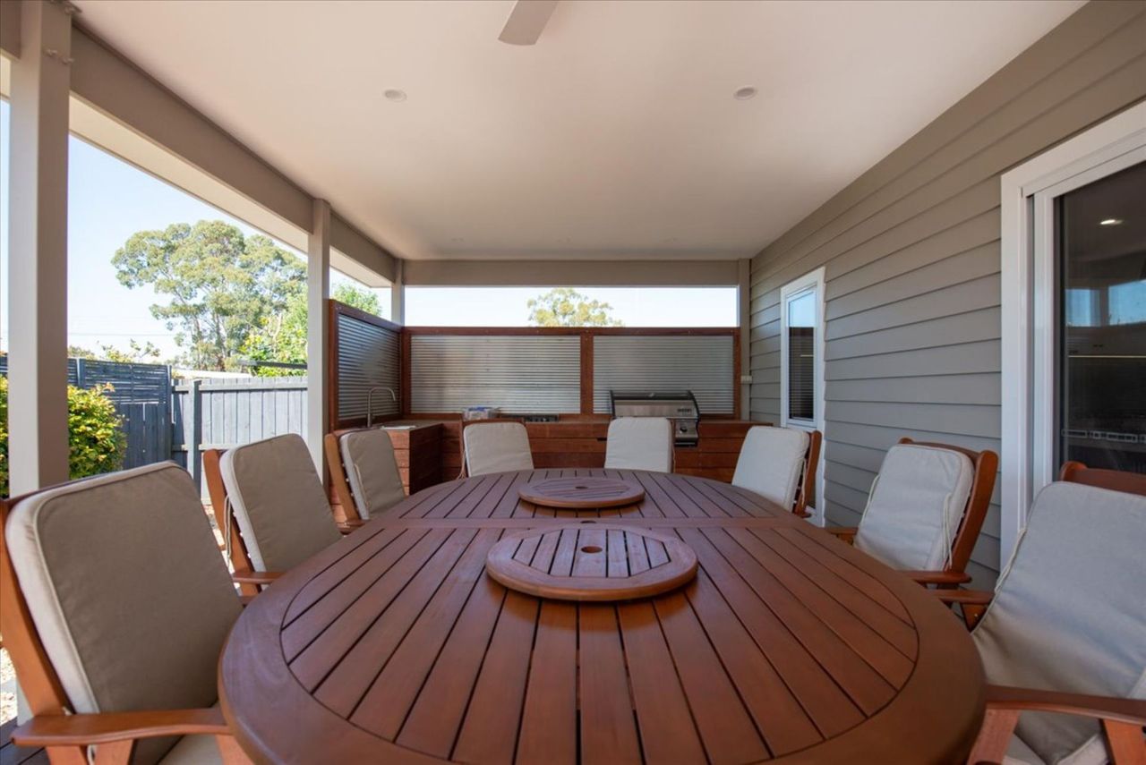 Step outside to the expansive undercover alfresco area, complete with an outdoor kitchen featuring a BBQ, stove and sink, along with a generous dining setting for 10 guests. It’s the perfect space for long lunches, evening meals and relaxed coastal entertaining. The fully enclosed backyard offers excellent privacy and is especially family friendly, providing a safe and secure space for children without access to the front of the property or street.
