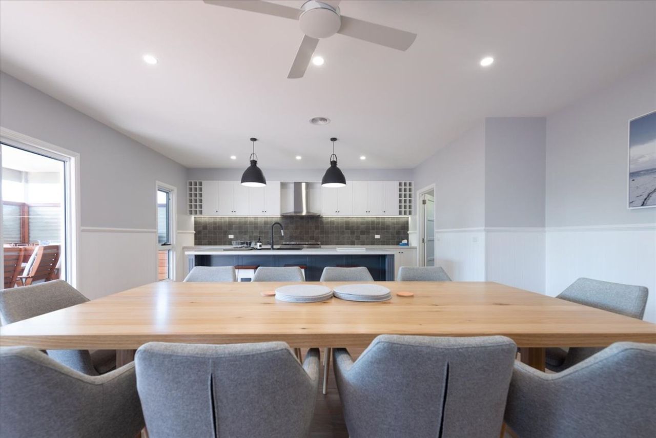 Welcome to your premium coastal escape in beautiful Inverloch! Wilson’s Beach Beauty is a modern and beautifully furnished home, thoughtfully designed for relaxed, stylish living and effortless comfort. Accommodating up to 10 guests, the home features four spacious bedrooms designed with comfort in mind. The master suite offers a king bed, walk-in robe and a private ensuite with a rainfall shower and separate toilet. Additional bedrooms include queen beds and well designed Tri-bunks (queen below, king single above), making it ideal for both adults and children. Full linen is included, ensuring a seamless and effortless stay.
