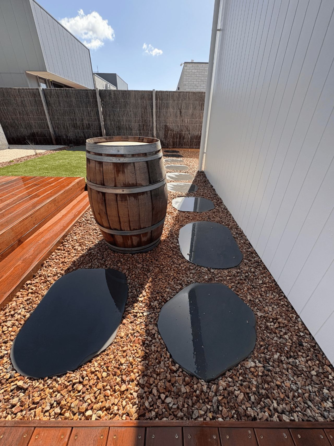 The ground floor also includes a powder room, laundry and direct access to the backyard. Outside, there is a deck ideal for entertaining, as well as an outdoor shower which is perfect for rinsing off after a day at the beach!
